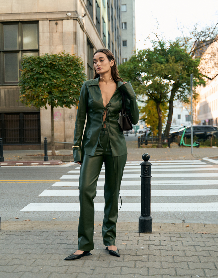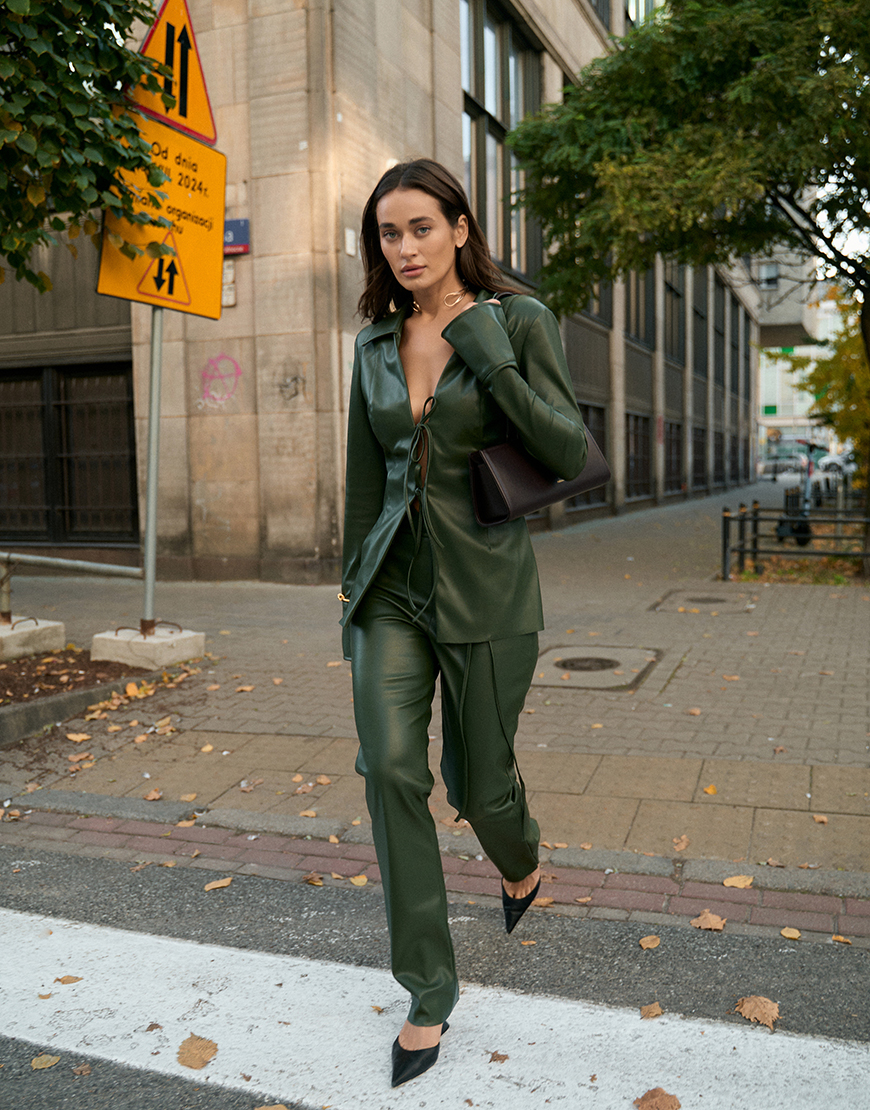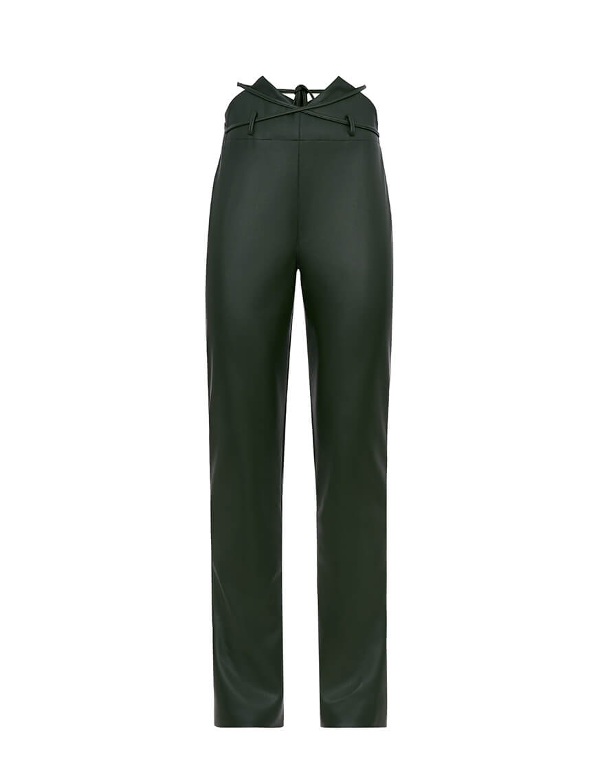 Доставка протягом 2-5 робочих днівШтани мають прямий крій, збоку розташована прихована застібка-блискавка, яка забезпечує акуратний вигляд. Лямки для поясу додають практичності, дозволяючи використовувати ремінь для більш виразного акценту на талії. Штани доповнені тонким шкіряним ремінцем, який підкреслює елегантність і створює завершений образ,можна зав’язувати як спереді ,так і ззаду. Ці штани ідеально поєднуються з сорочкою та топом із нової колекції бренду.