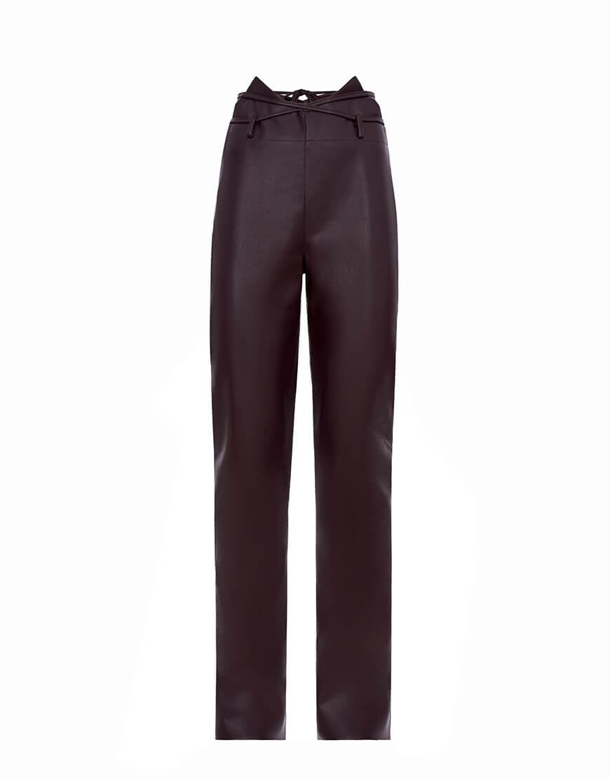 Доставка протягом 2-5 робочих днівШтани мають прямий крій, збоку розташована прихована застібка-блискавка, яка забезпечує акуратний вигляд. Лямки для поясу додають практичності, дозволяючи використовувати ремінь для більш виразного акценту на талії. Штани доповнені тонким шкіряним ремінцем, який підкреслює елегантність і створює завершений образ,можна зав’язувати як спереді ,так і ззаду. Ці штани ідеально поєднуються з сорочкою та топом із нової колекції бренду.