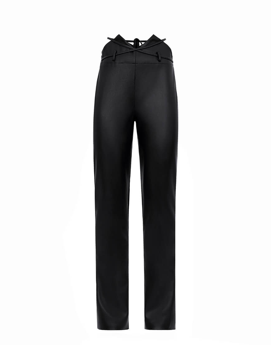 Доставка протягом 2-5 робочих днівШтани мають прямий крій, збоку розташована прихована застібка-блискавка, яка забезпечує акуратний вигляд. Лямки для поясу додають практичності, дозволяючи використовувати ремінь для більш виразного акценту на талії. Штани доповнені тонким шкіряним ремінцем, який підкреслює елегантність і створює завершений образ,можна зав’язувати як спереді ,так і ззаду. Ці штани ідеально поєднуються з сорочкою та топом із нової колекції бренду.