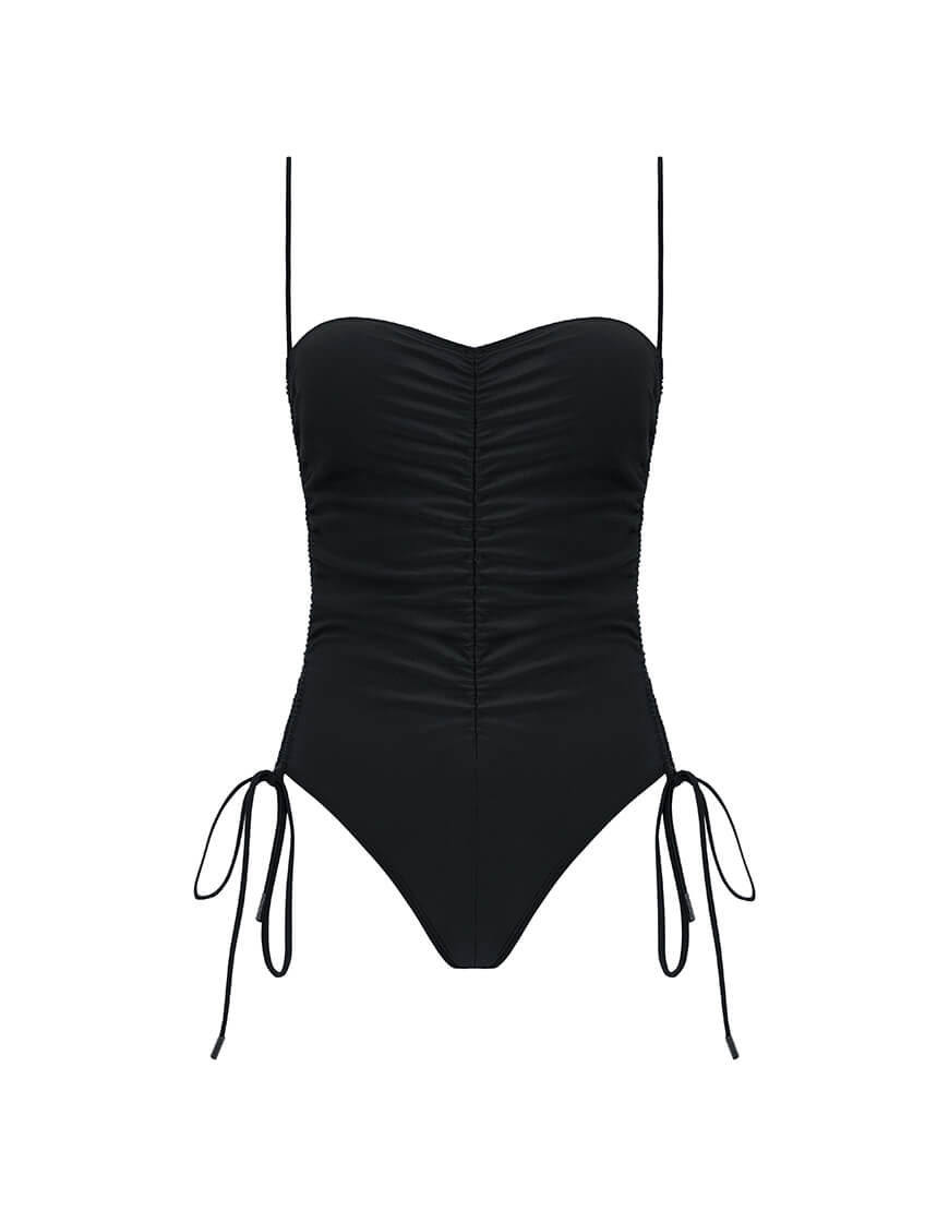 Суцільний купальник із боковими драпіровками-стяжками виготовлений із високоякісного еластичного матеріалу, він чудово облягає фігуру, підкреслюючи її переваги. Драпіровки-стяжки з боків дозволяють регулювати посадку купальника, створюючи ефект витонченої талії та додаючи грайливого акценту. Можна носити як з бретелями,так і без. Цей купальник не тільки забезпечує зручність під час плавання, але й привертає увагу своїм стильним дизайном. Ідеальний вибір для тих, хто хоче виглядати чудово як на пляжі, так і біля басейну.