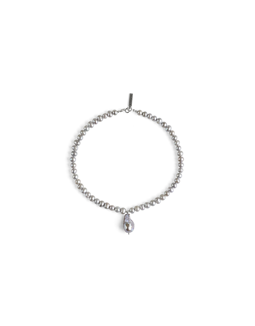 Доставка впродовж 3-5 робочих днівКольє з натуральних річкових перлин сірого кольору. Кулон – натуральна барокова перлина сфірого кольору. *може незначно відрізнятися від представленної на фото за формою в силу свого природнього походження Застібка та фурнітура- срібло 925. Основа – спеціальний ювелірний трос, який тримає форму, при цьому приймаючи форму вигинів тіла, що забезпечує гарну посадку