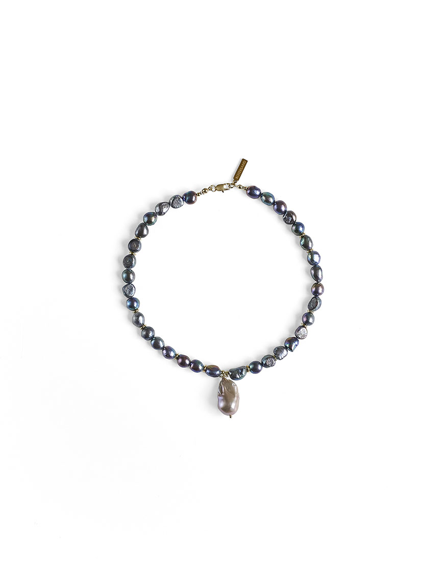 Доставка впродовж 3-5 робочих днівКольє – чокер з натуральних річкових перлин темного кольору з великою бароковою перлиною.