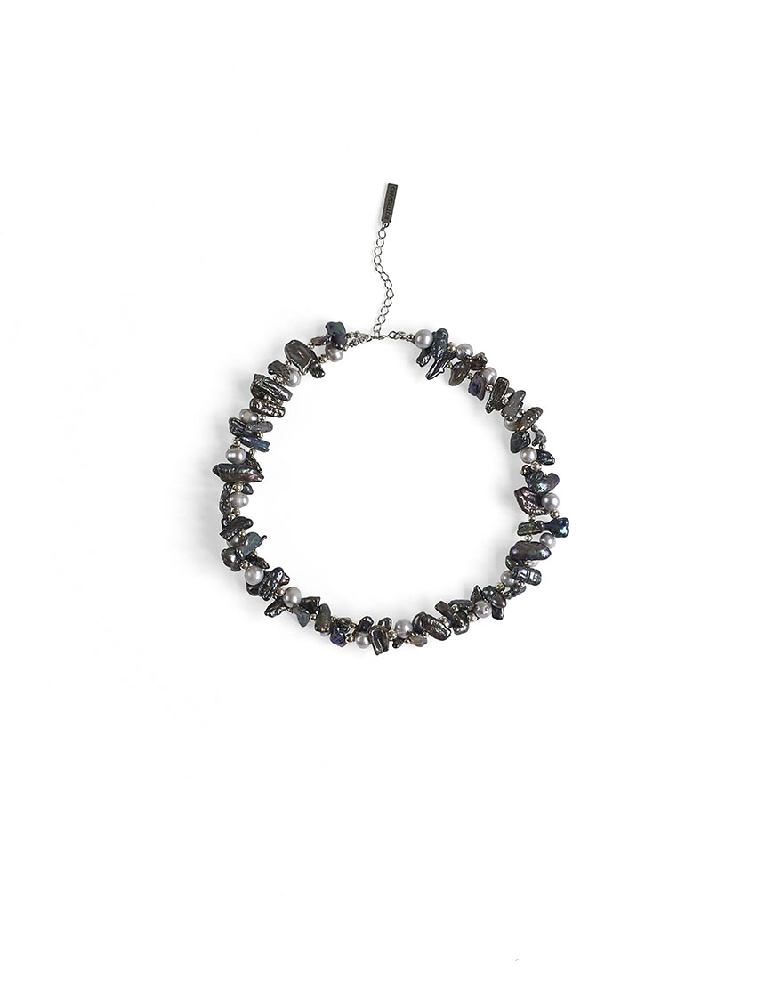 Доставка впродовж 3-5 робочих днівКольє з натуральних річкових перлин хамелеон і сірого кольору, переплетених між собою. Декілька різновидів форми та розміру в одному кольє.
