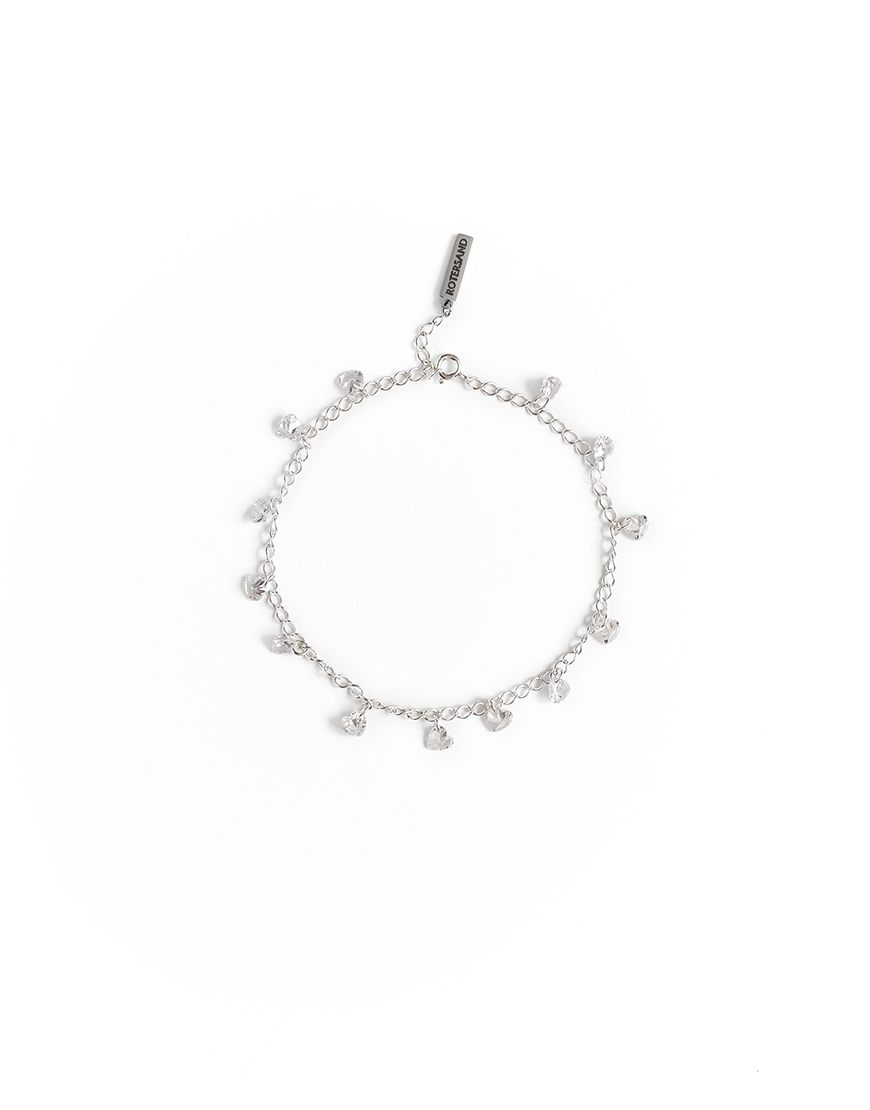 Доставка впродовж 3-5 робочих днівБраслет на ніжку з мерехтливими сердечками-фіанітами білого кольору. Дуже приємний в русі та невагомий на нозі. Довжину можна корегувати під свій розмір щиколотки. Розмір камінців – 6мм, загальна довжина ланцюжка 26см. Срібло 925