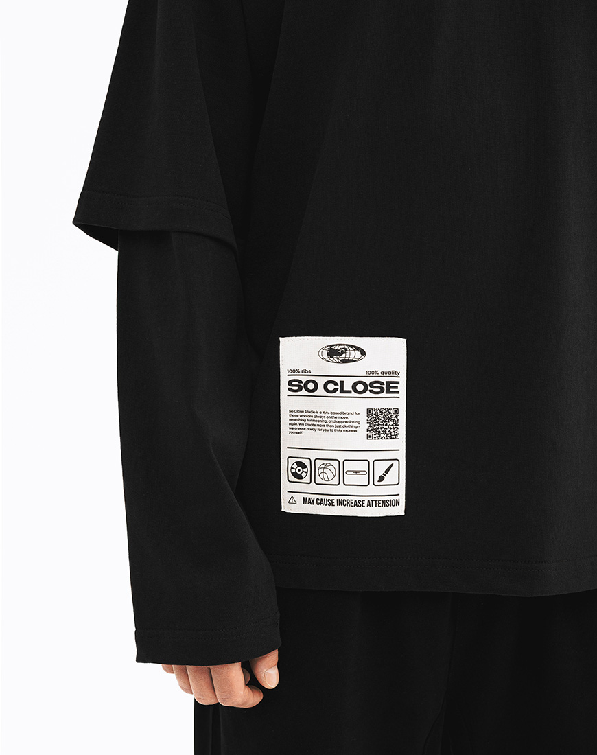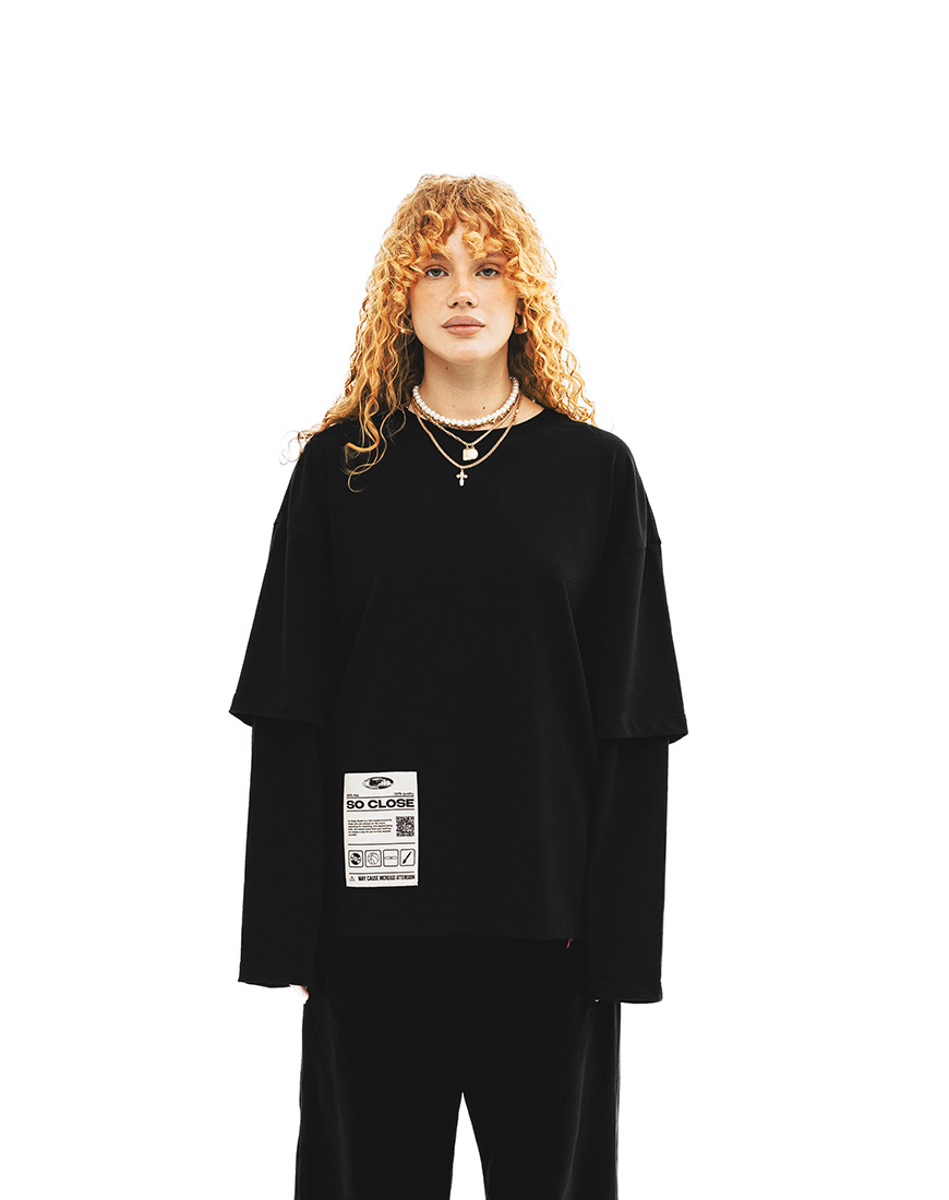 Дизайн повторює силует базової футболки, але з подовженими рукавами.
