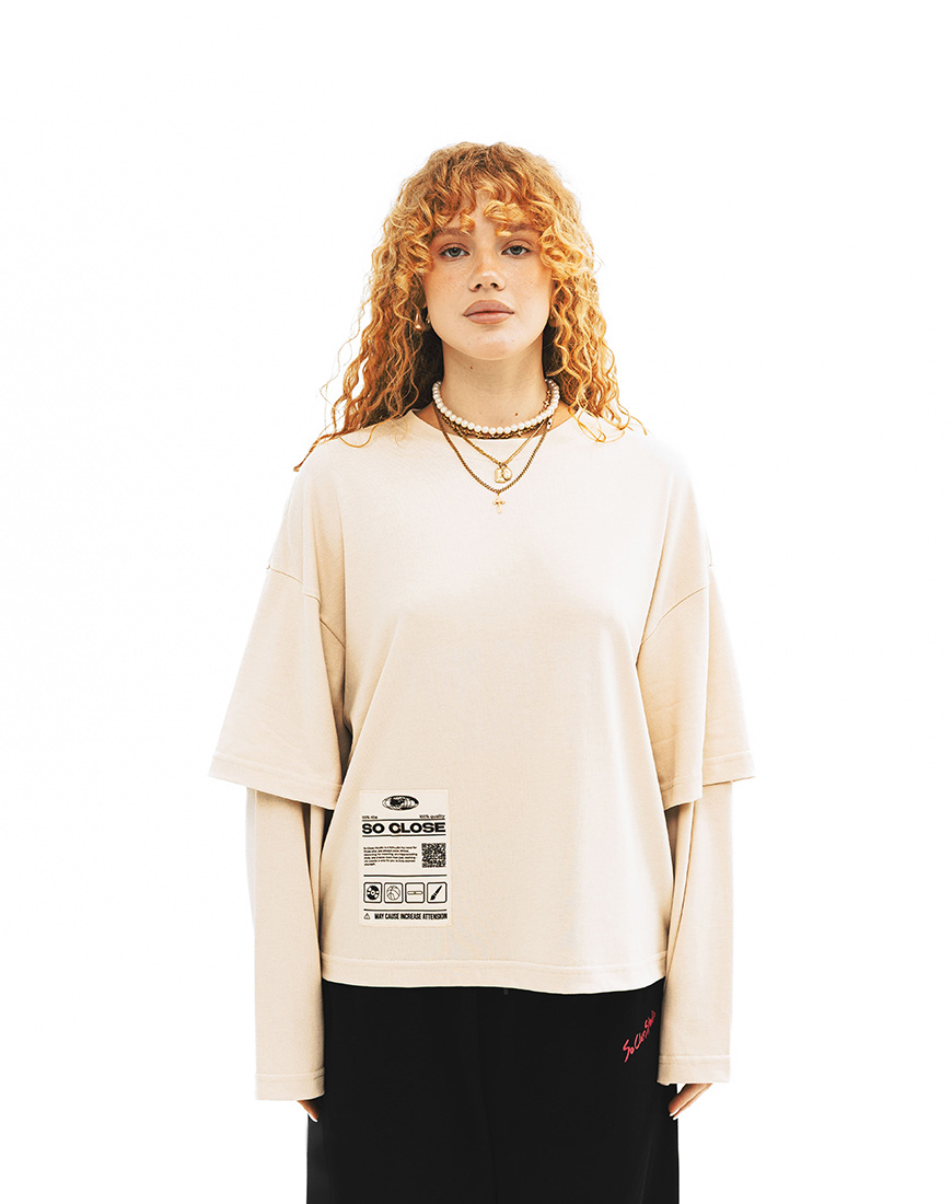 Дизайн повторює силует базової футболки, але з подовженими рукавами.