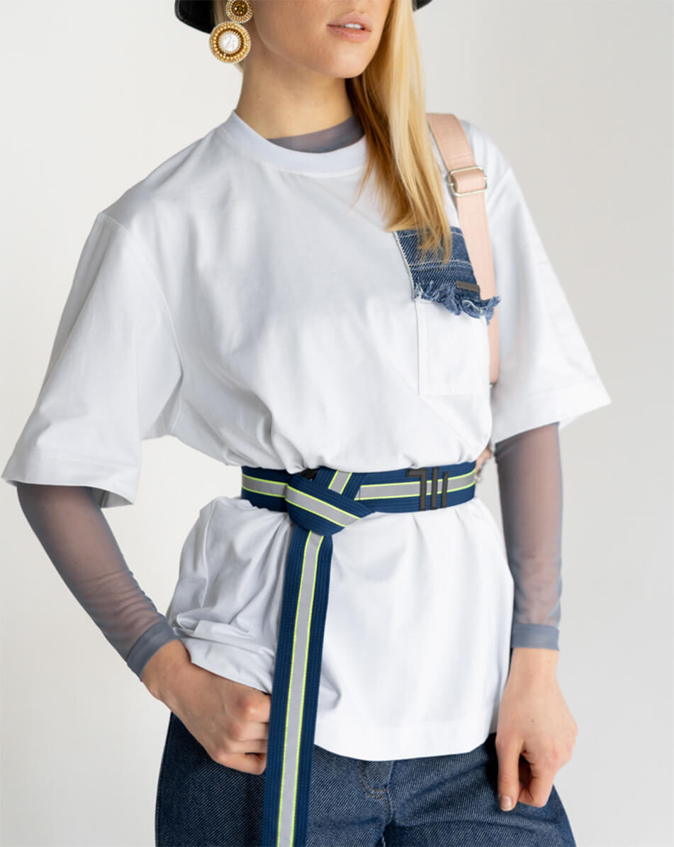 Доставка впродовж 2-5 робочих днівПояс-тісема синьо-сірий довжиною 40 мм, one size.