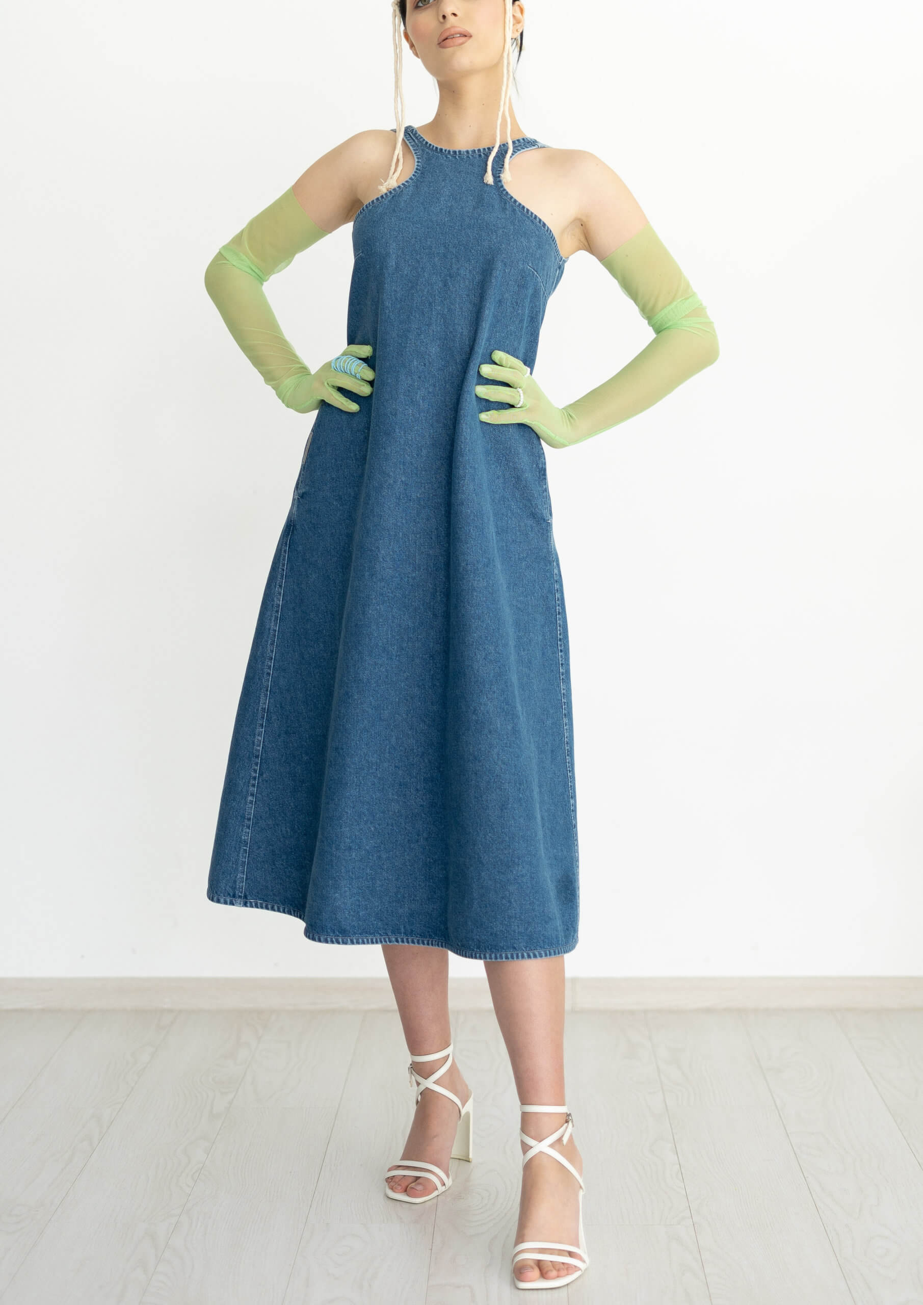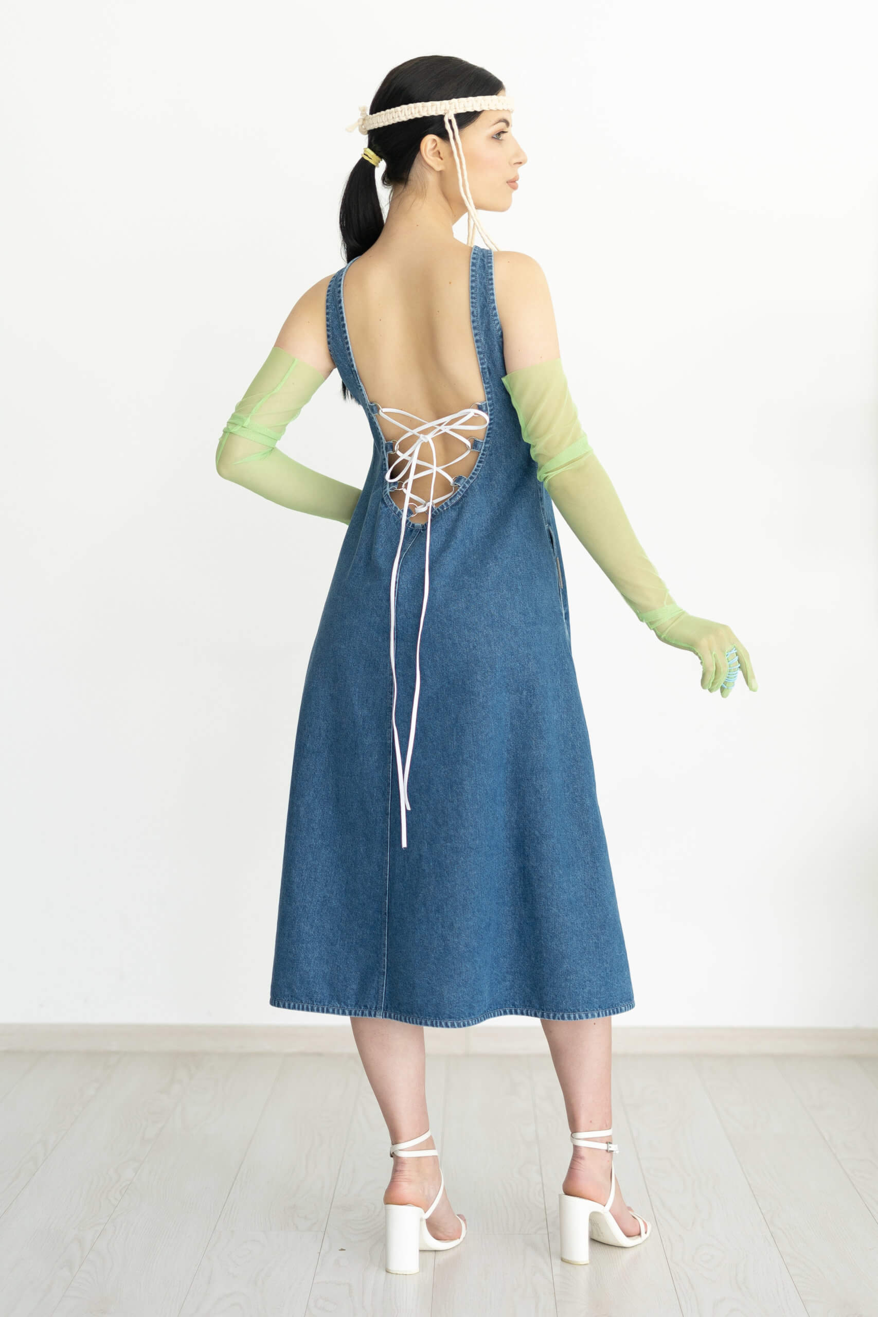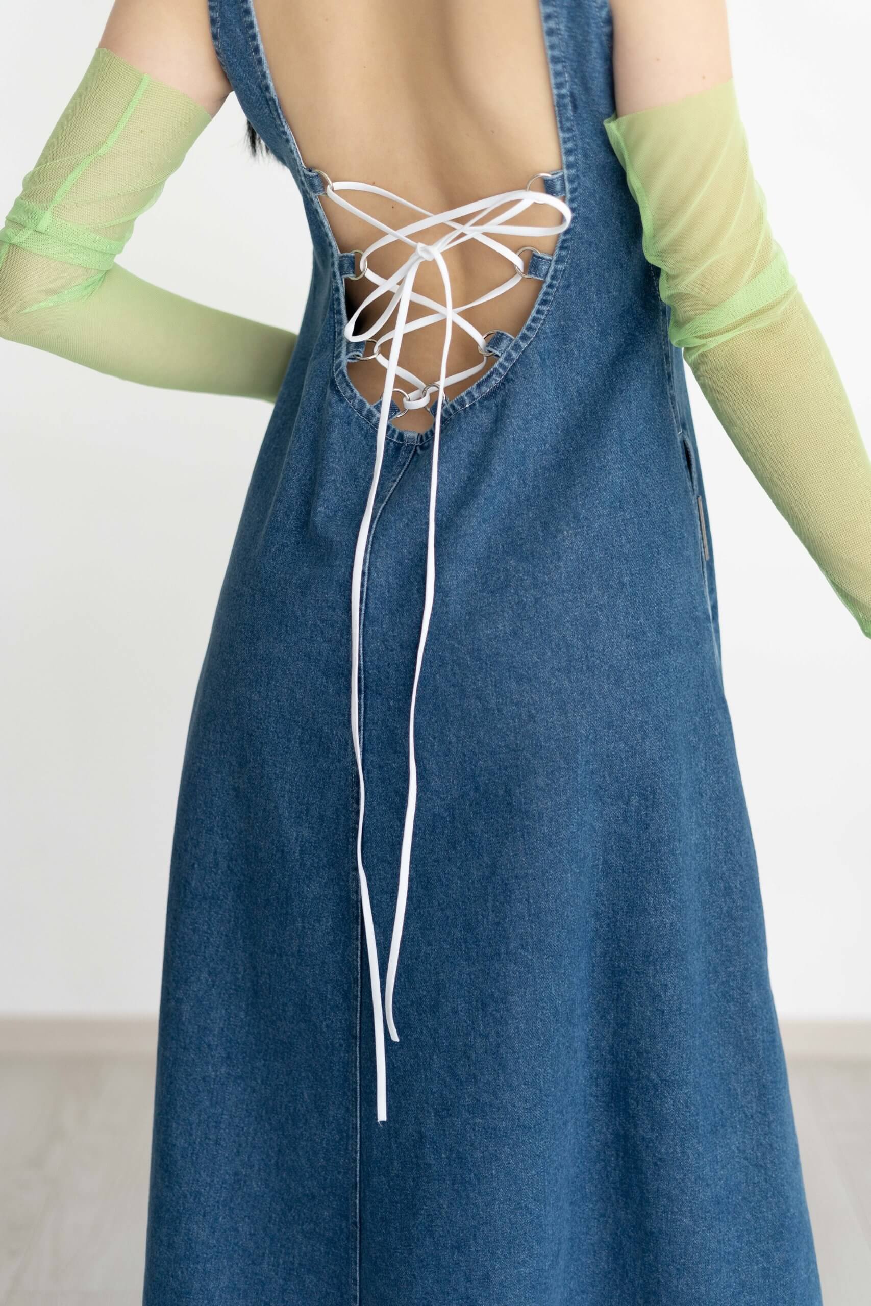 Доставка впродовж 2-5 робочих днівСарафан напівприлеглого силуету розширеного до низу, виконаний із літньої тканини. Кишені у бокових швах, з боків розрізи. На спинці глибокий виріз із контрастним шнуром.