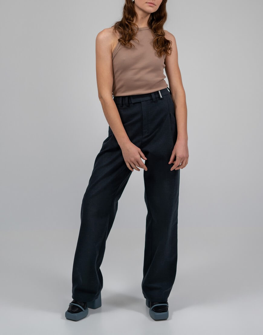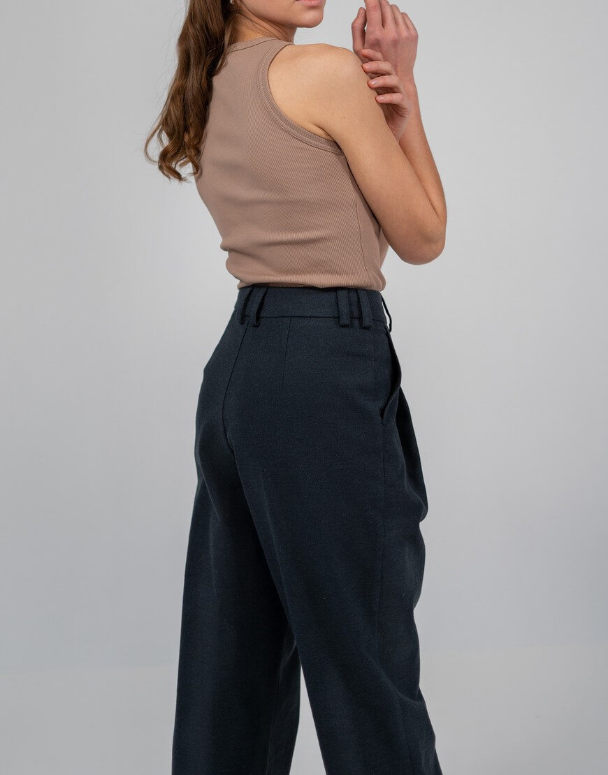 Доставка впродовж 2-5 робочих днівШтани прямі виконані з теплої костюмної тканини. Висока посадка, бічні кишені, є шльовки під ремінь.