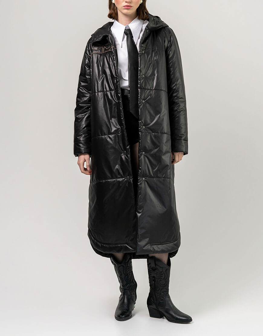 Доставка впродовж 2-5 робочих днівПальто оверсайз з капюшоном та рівним силуетом виготовлене з водонепроникної плащової тканини, оснащене утеплювачем – Термолофт, призначене для ефективного теплозбереження при температурі до -10 градусів (европейська зима). Пальто довжиною міді, застібається на кнопки, рукав реглан, а також оснащене кишенями і поясом. Представлене універсальним розміром one size