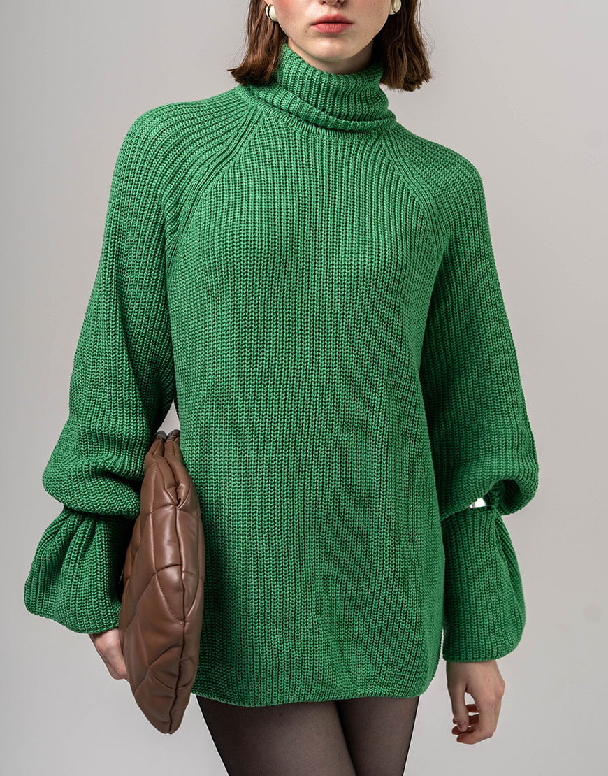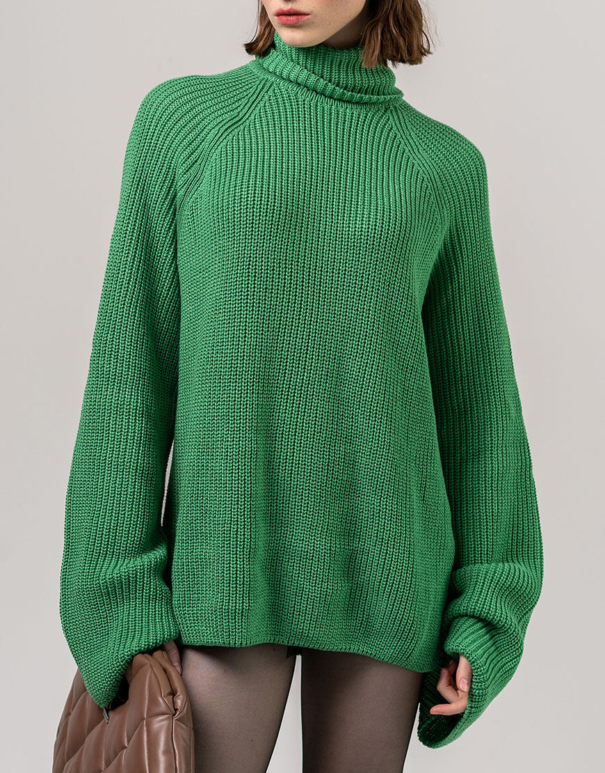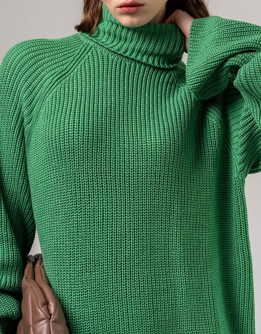 Доставка впродовж 2-5 робочих днівСветр вільного крою, оверсайз грубої в’язки з високим коміром. Рукав реглан, рівний до низу і трохи подовжений. Модель Unisex, представлена в розмірі one size.