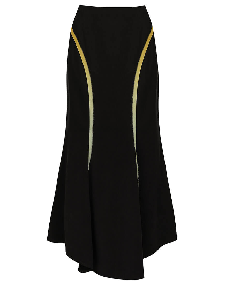 Доставка впродовж 2-5 робочих днівЦя максі-спідниця має силует годе з низькою посадкою та виготовлена з тенселу. Її застібка ззаду на блискавку для зручності. Декоративні смужки по поличці та спинці додають особливого шарму цій моделі.
