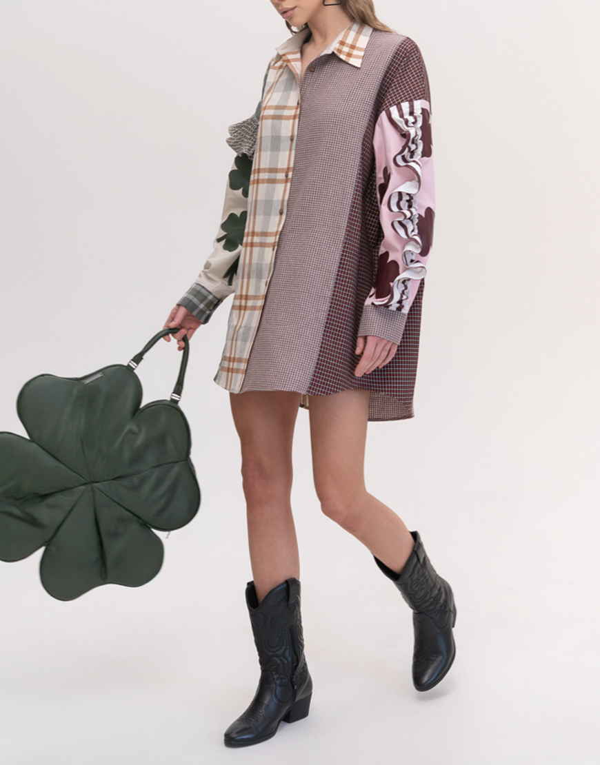 Доставка впродовж 2-5 робочих днівЦя стильна сукня оверсайз виконана в стилі бохо, поєднуючи п’ять різних тканин: клітинку, однотонну тканину, екошкіру та декоративні елементи. Такий мікс створює унікальний і оригінальний вигляд, підкреслюючи індивідуальність моделі.