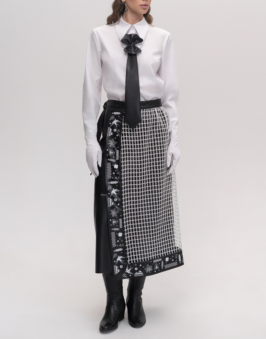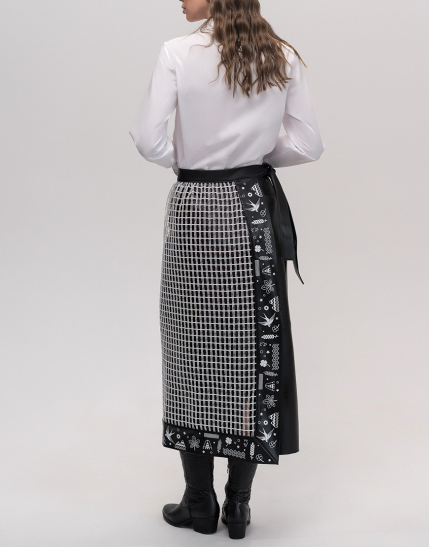 4 599 грнПлахта виготовлена з білої сітки та екошкіри, де принт на екошкірі поєднує етнічні мотиви з сучасною графікою. Центральним символом колекції стала конюшина — уособлення миру, гармонії та добробуту. Вона символізує ідею, що добро, посіяне навколо нас, приносить врожай спокою й злагоди. У поєднанні з іншими деталями принта, вона надає виробу особливого змісту, перетворюючи його на оберіг та стильний акцент водночас.