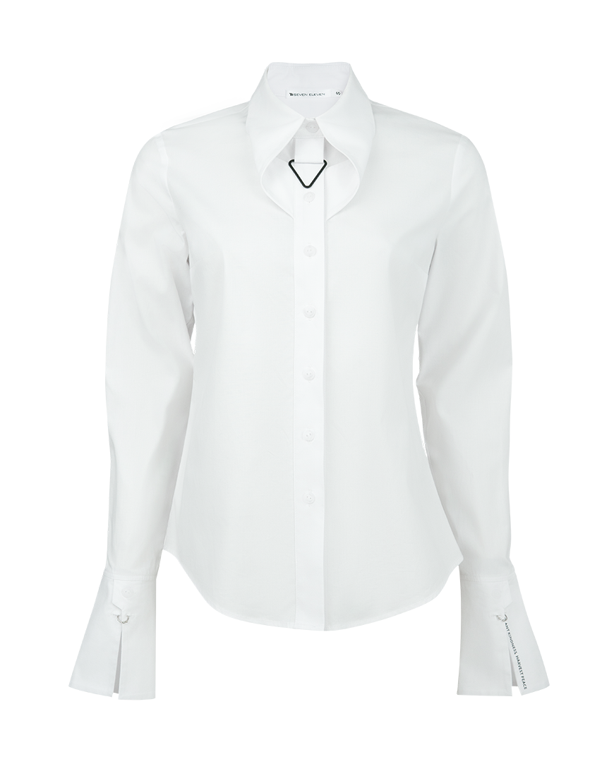 Доставка впродовж 2-5 робочих днівПриталена сорочка, виготовлена з сорочкової тканини з еластаном білого кольору. Основною особливістю моделі є декоративний комір, що надає сорочці стильного вигляду. Сорочка має акцентні манжети з принтом, оформлені пірсінгом, що підкреслює модні тенденції і додає образу оригінальності.