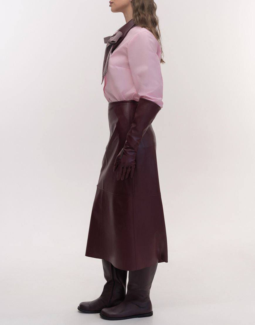 Доставка впродовж 2-5 робочих днівСтильна міді-спідниця А-силуету, виготовлена з м’якої екошкіри. Завдяки своєму крою вона підкреслює фігуру, забезпечуючи комфортну посадку нижче талії, що створює сучасний і вишуканий силует.