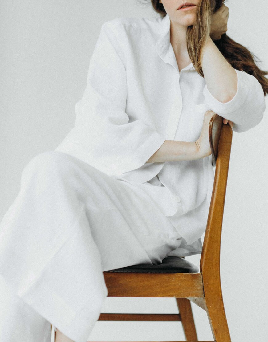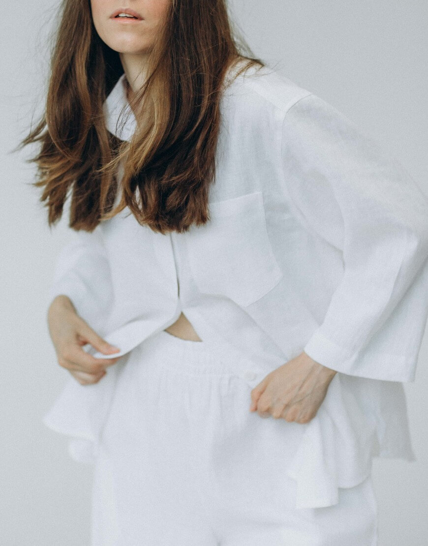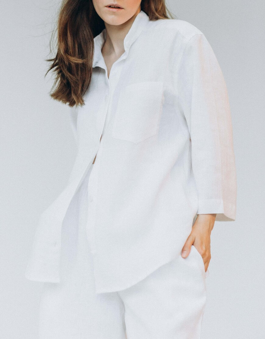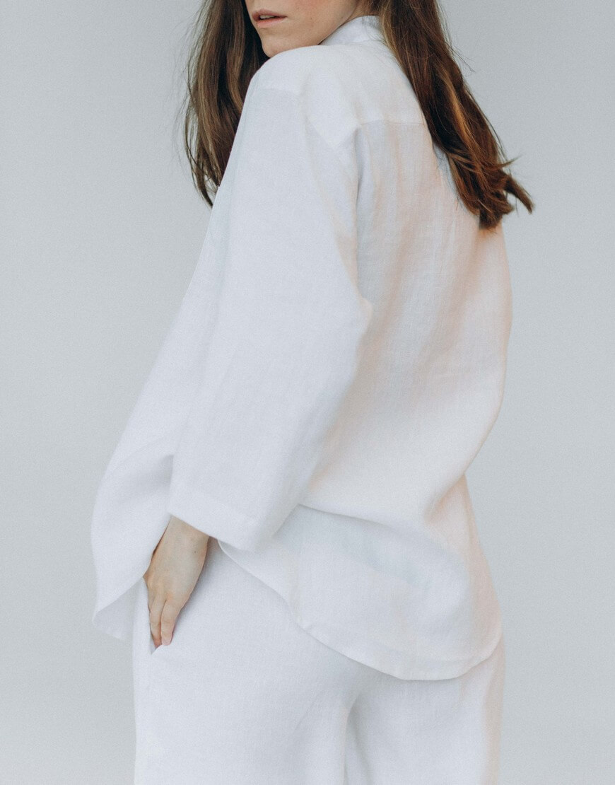 Склад: 100% льон. Ґудзики – 100% мушля