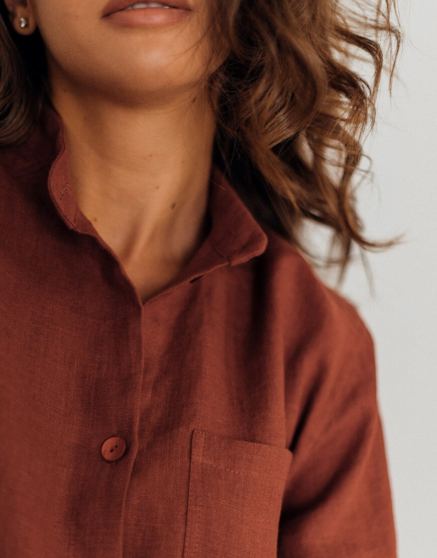 Склад: 100% льон. Ґудзики – 100% мушля