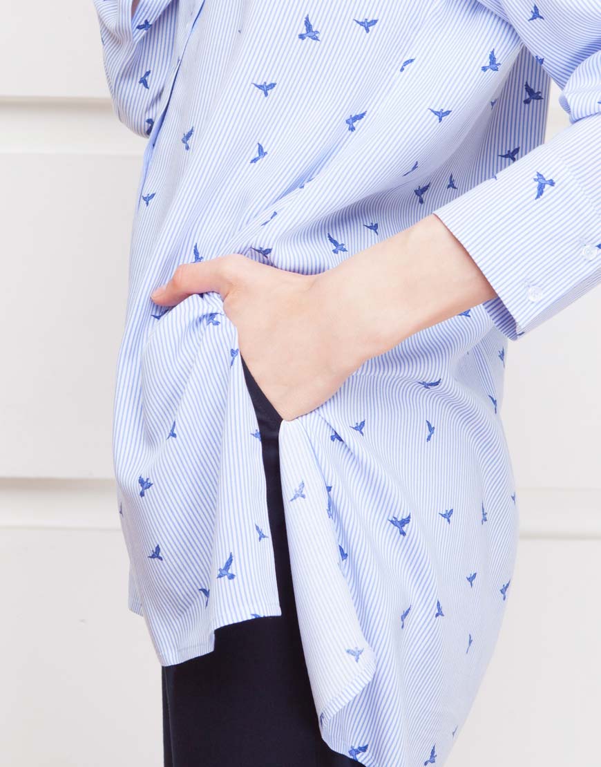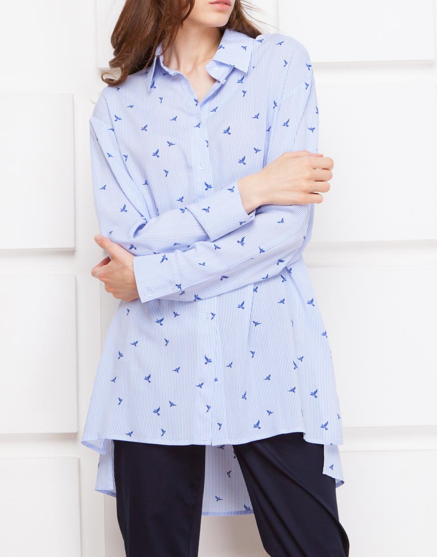 Сорочка вільного крою з більш короткою поличкою та розрізами з боків. Ніжний принт надасть стильності вашому образу.