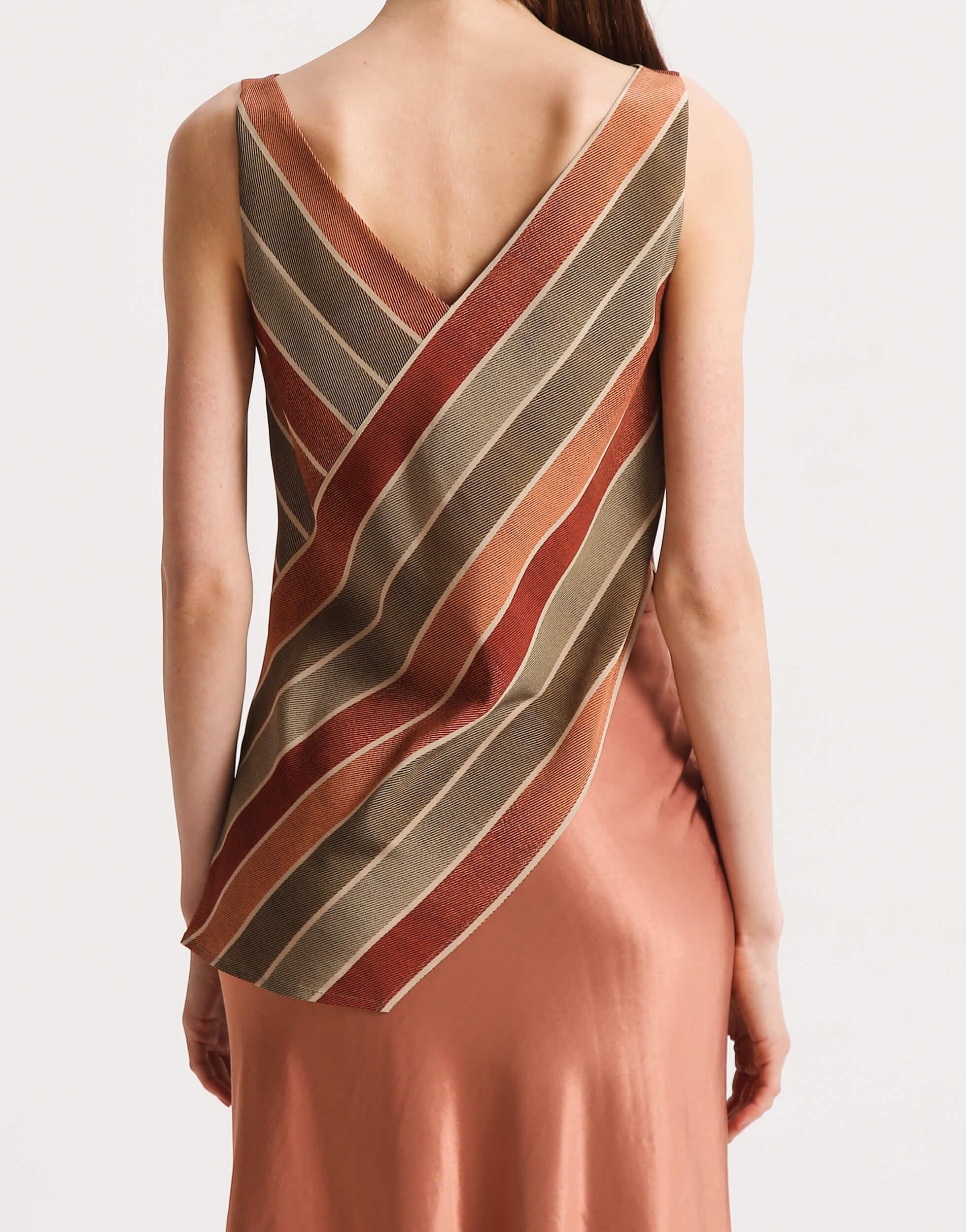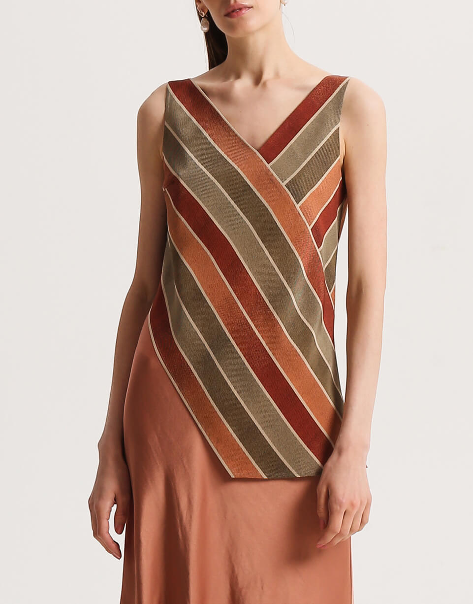 Асиметрична блуза з V-подібним вирізом. У верхній частині виконана з двох шарів шовку. З боків виробу – декоративні розрізи.