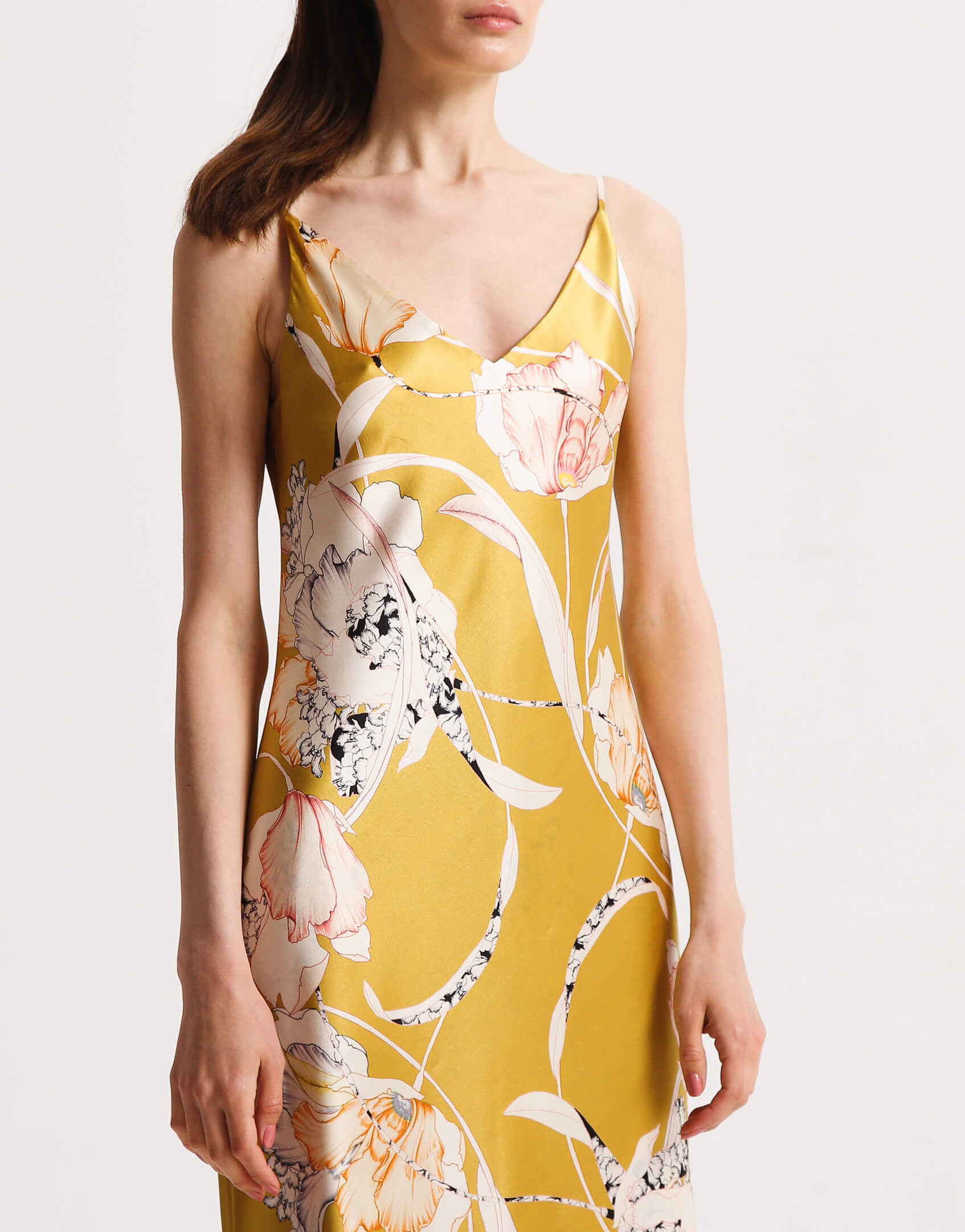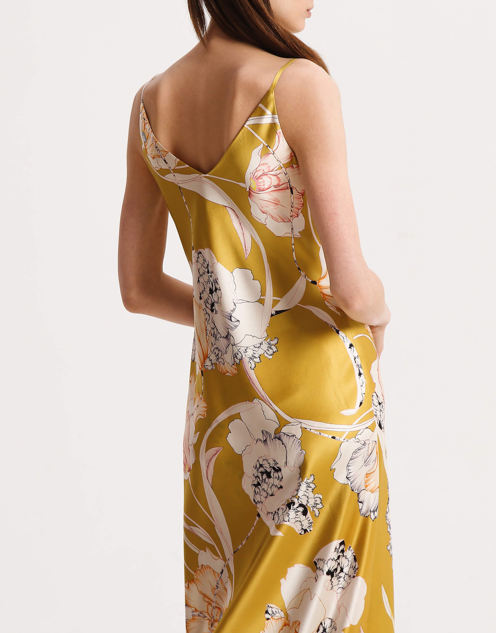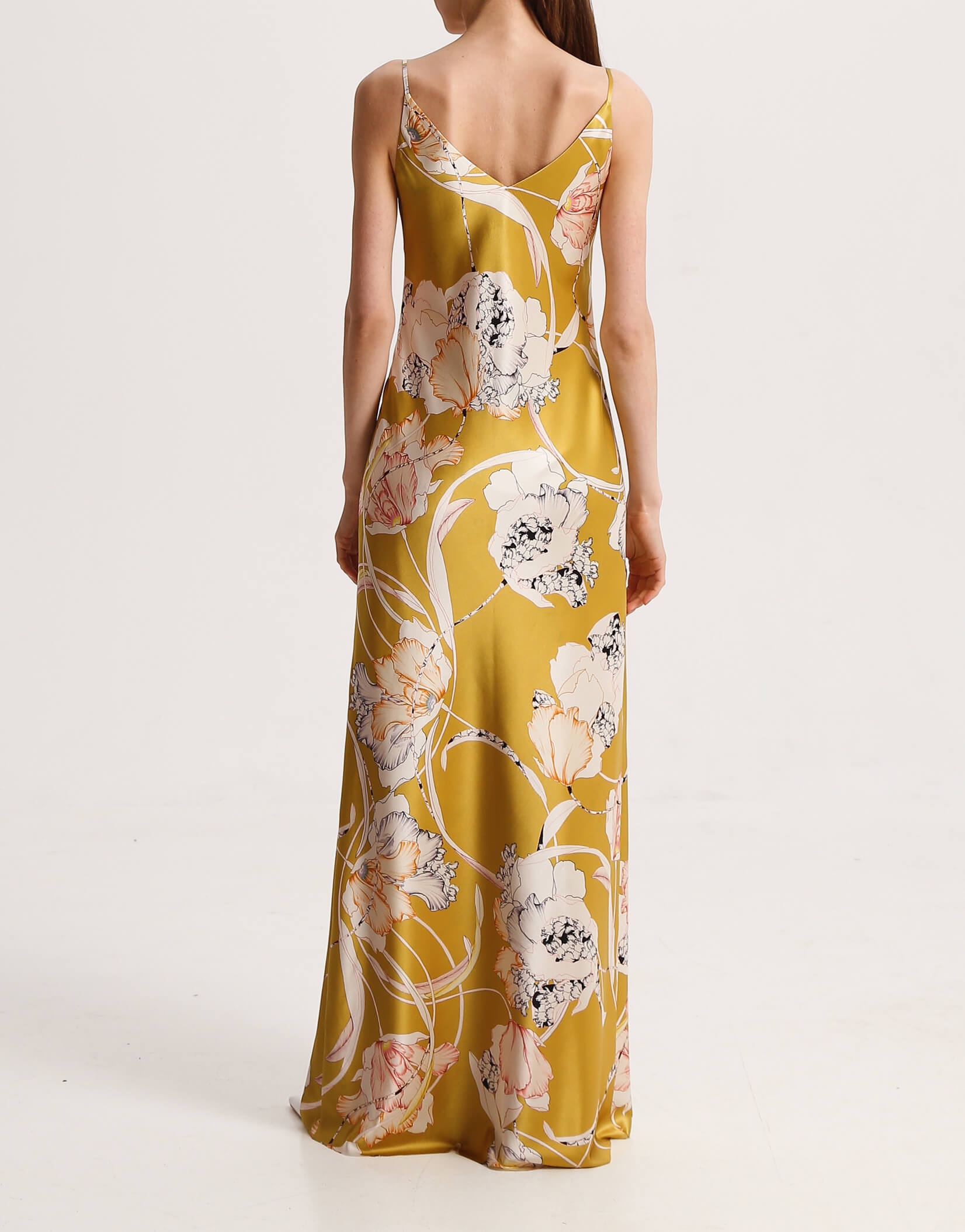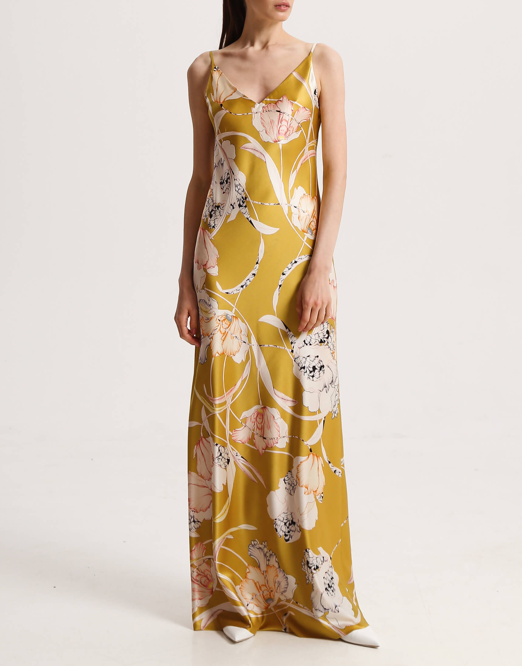 Розкішна довга сукня на тонких бретелях. Виконана з двох шарів натурального шовку. Вкоротити сукню безкоштовно можна в шоу-румі виробника.