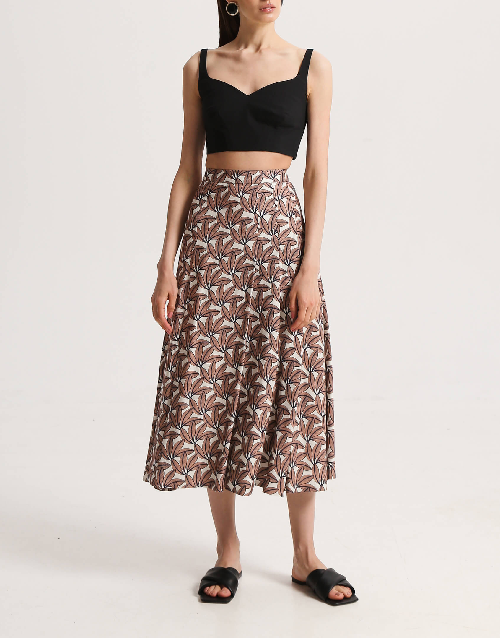 Ефектна спідниця з трьома складами з боків. Верх склад застрочений зменшення обсягу області стегна. Виконана з італійської віскози. Ззаду застібається на блискавку та гудзик.
