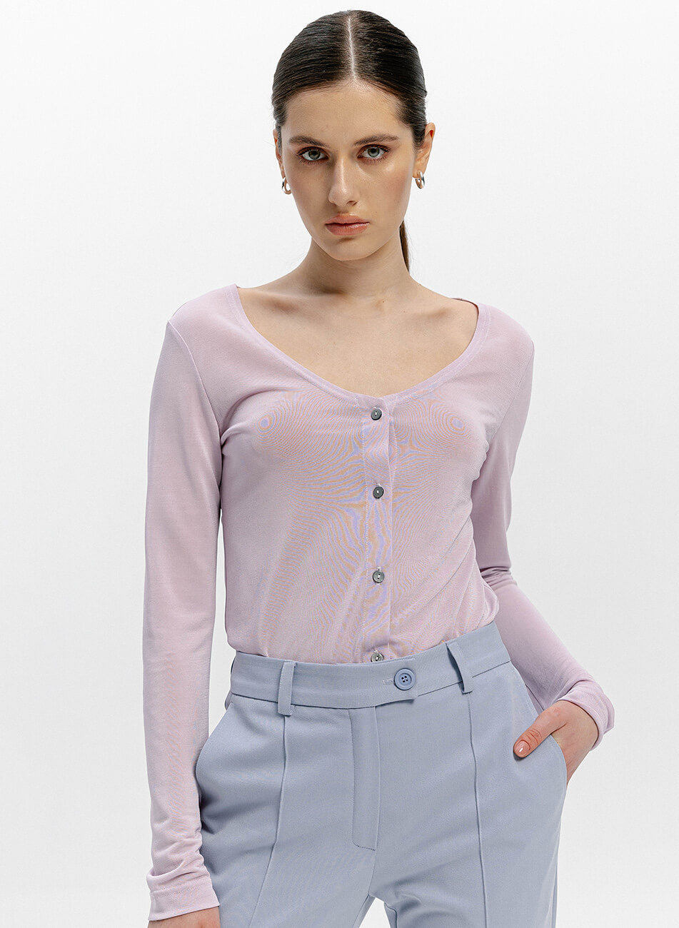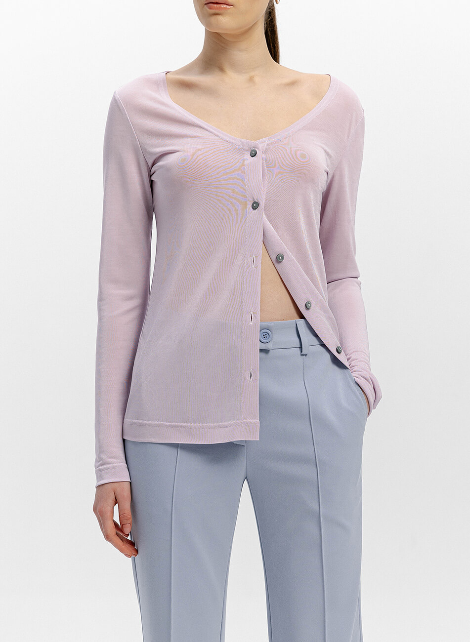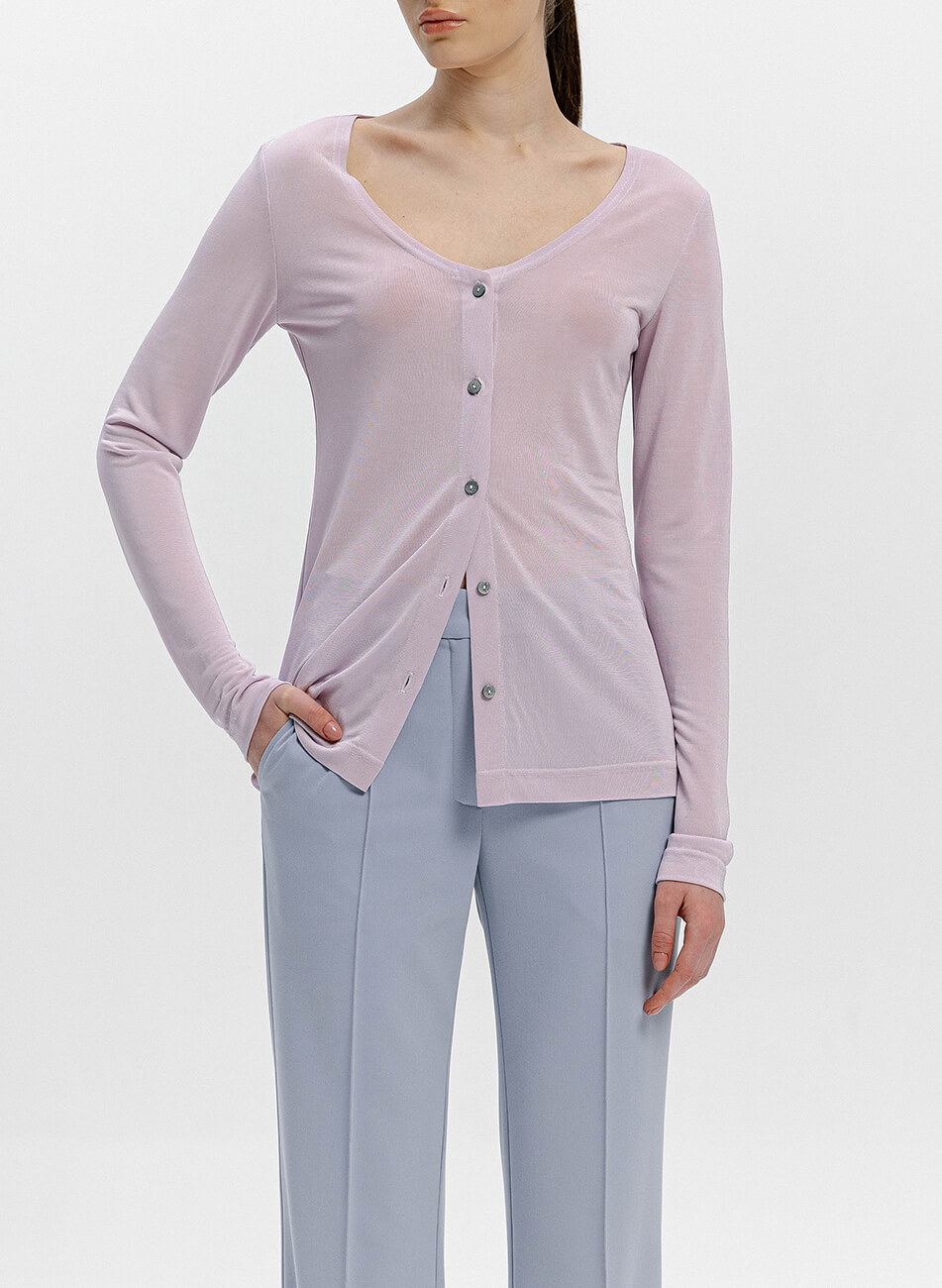 Доставка впродовж 2-5 робочих днівКардиган прямого крою з довгими рукавами ніжно-рожевого кольору. Спереду застібається на гудзики. Виготовлений з тонкого віскозного полотна. Довжина виробу 62 см.