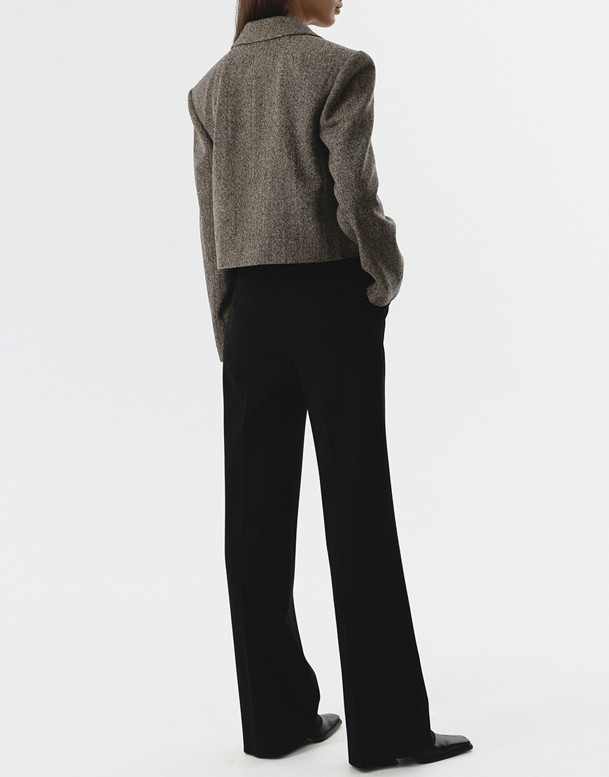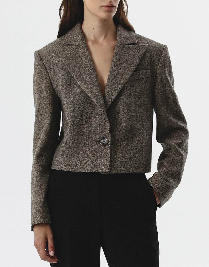Тренд року – короткий жакет з підплечниками. Виготовлений зі щільної італійської вовни на срейчевій віскозній підкладці. Спереду застібається на один ґудзик. На лівій поличці кишеня-обманка. Довжина виробу 55 см.