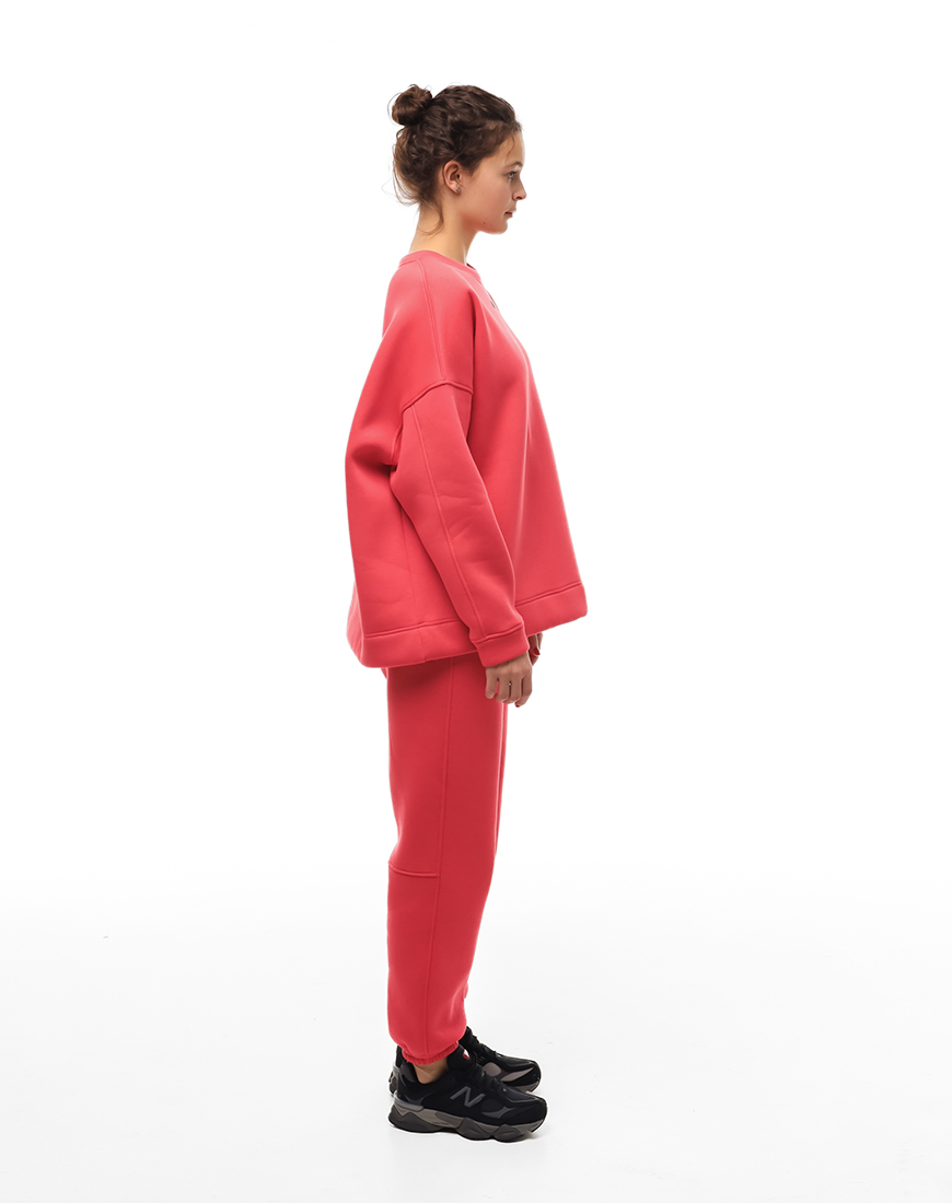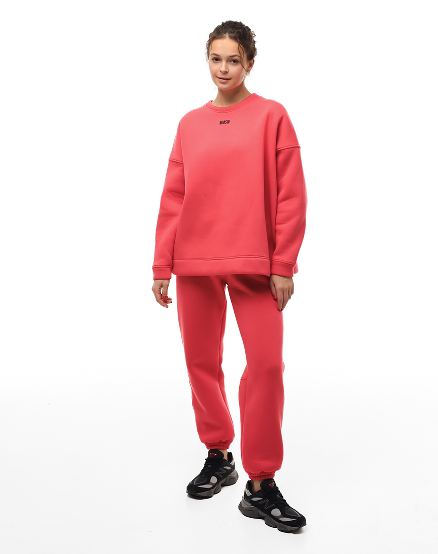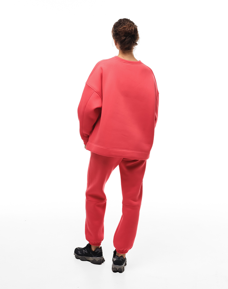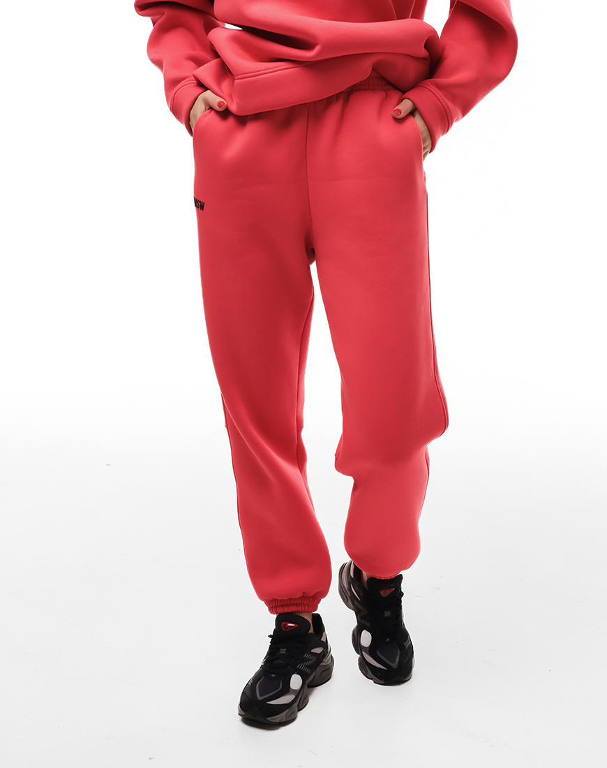 Доставка впродовж 2-5 робочих днівЖіночі спортивні штани коралового кольору з м’якого еластичного трикотажу. Виразний відтінок та акуратна відстрочка створюють стильний образ у поєднанні з худі у складі жіночого спортивного костюма.