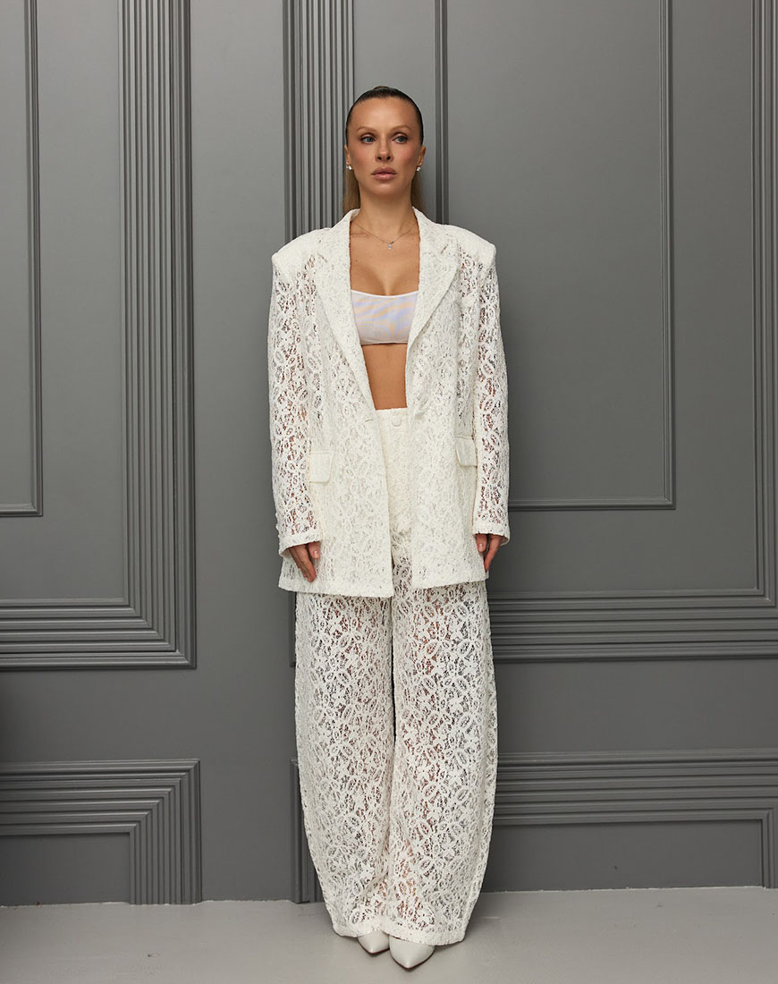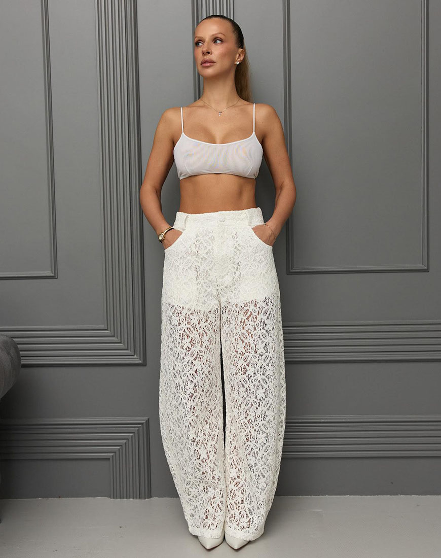 Штани із мереживної тканини білого кольору