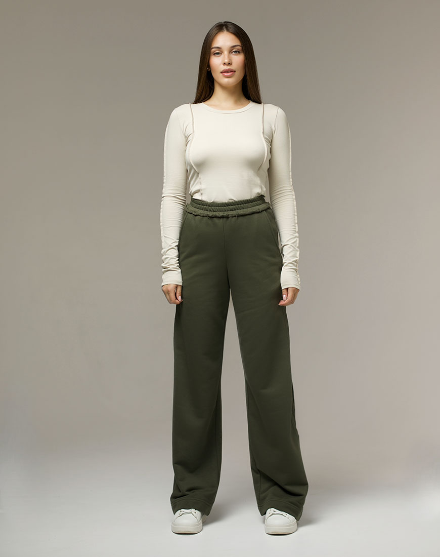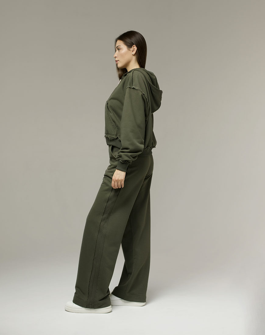 Штани з лампасами у кольорі хакі