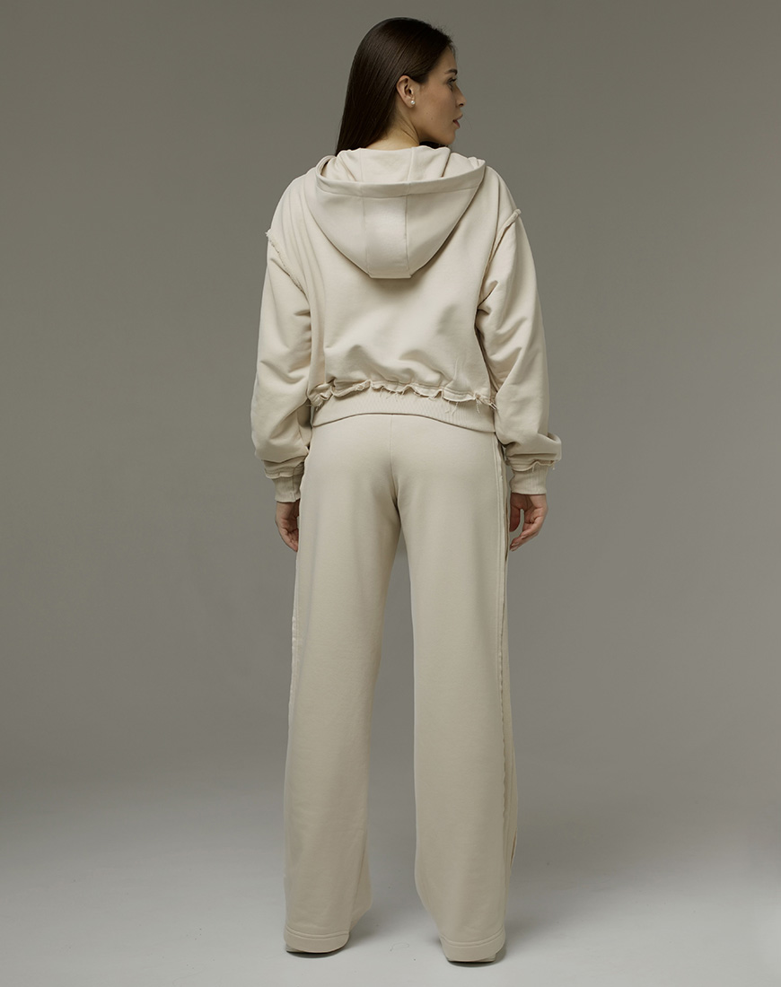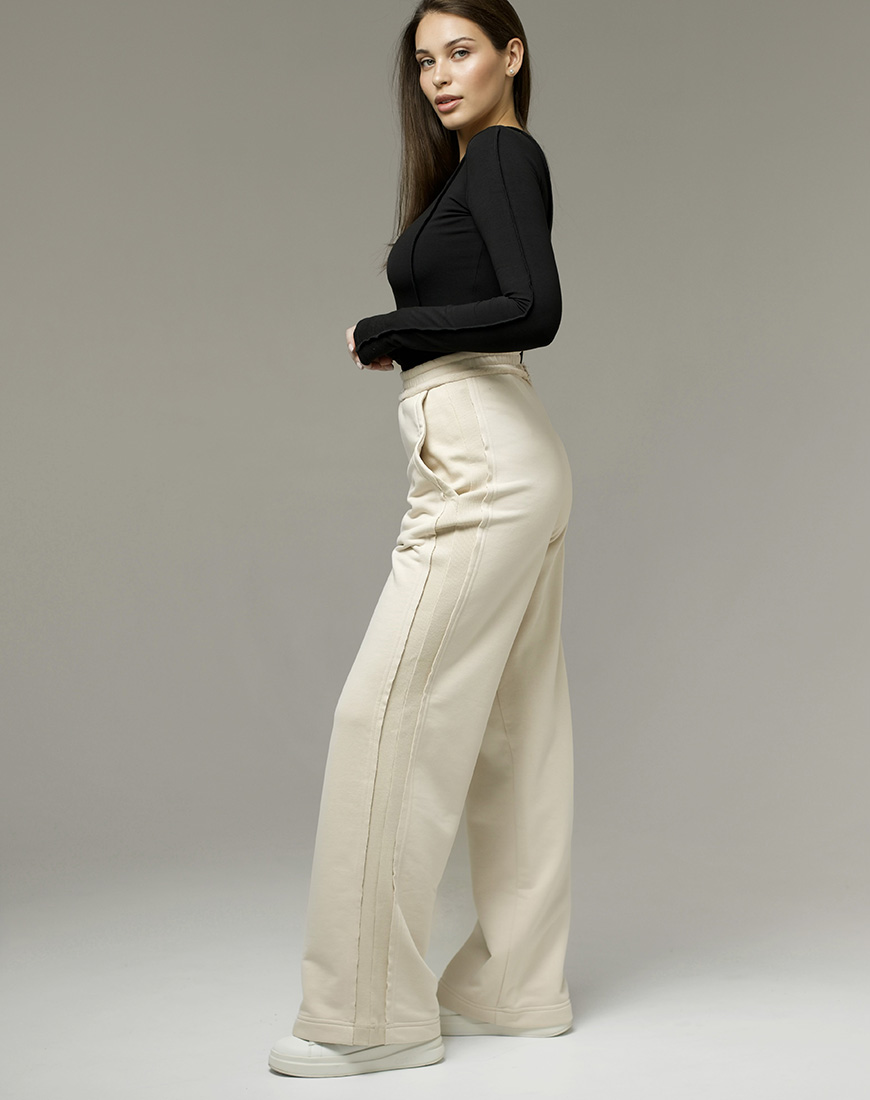 Жіночі штани прямого крою з лампасами та внутрішніми кишенями. Стильні штани зі швами назовні дуже комфортні, з ними можна зібрати безліч образів. Матеріалу властиве зминання завдяки натурального складу, тканина приємна до тіла та пропускає повітря.