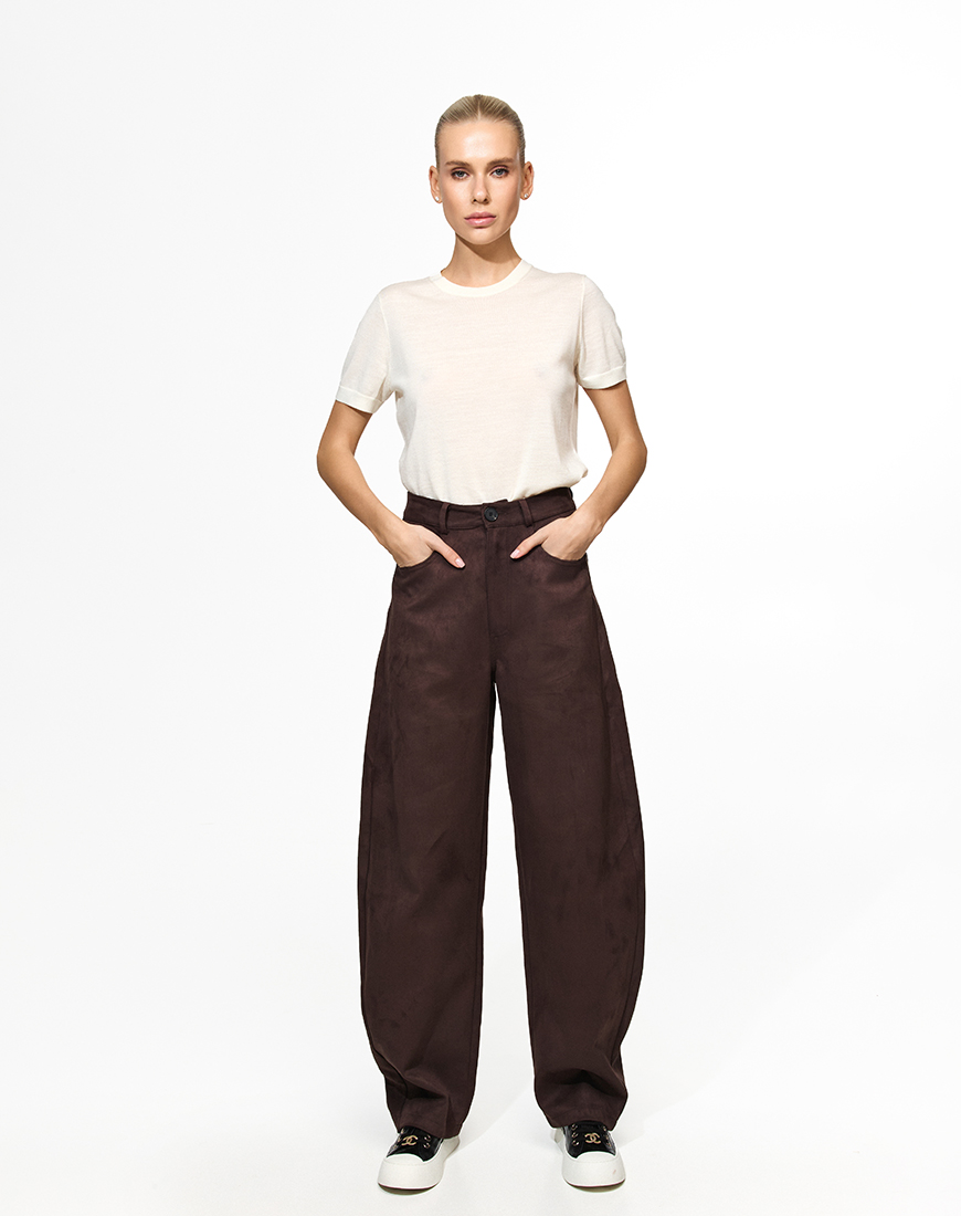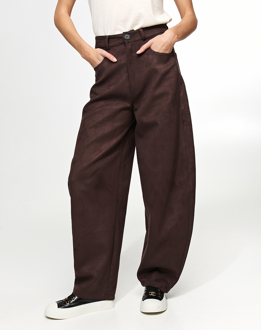 Доставка впродовж 5-7 робочих днівШирокі брюки з високою посадкою в трендовому коричневому відтінку.