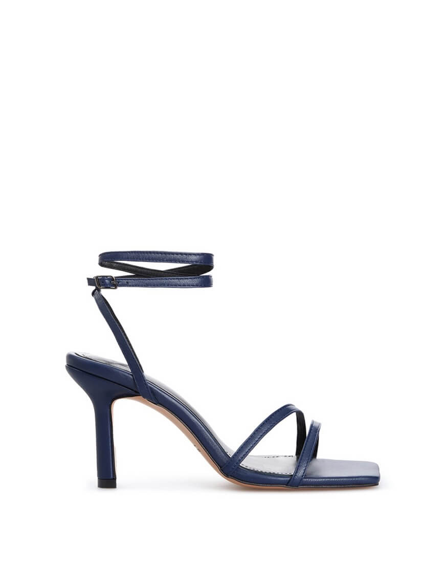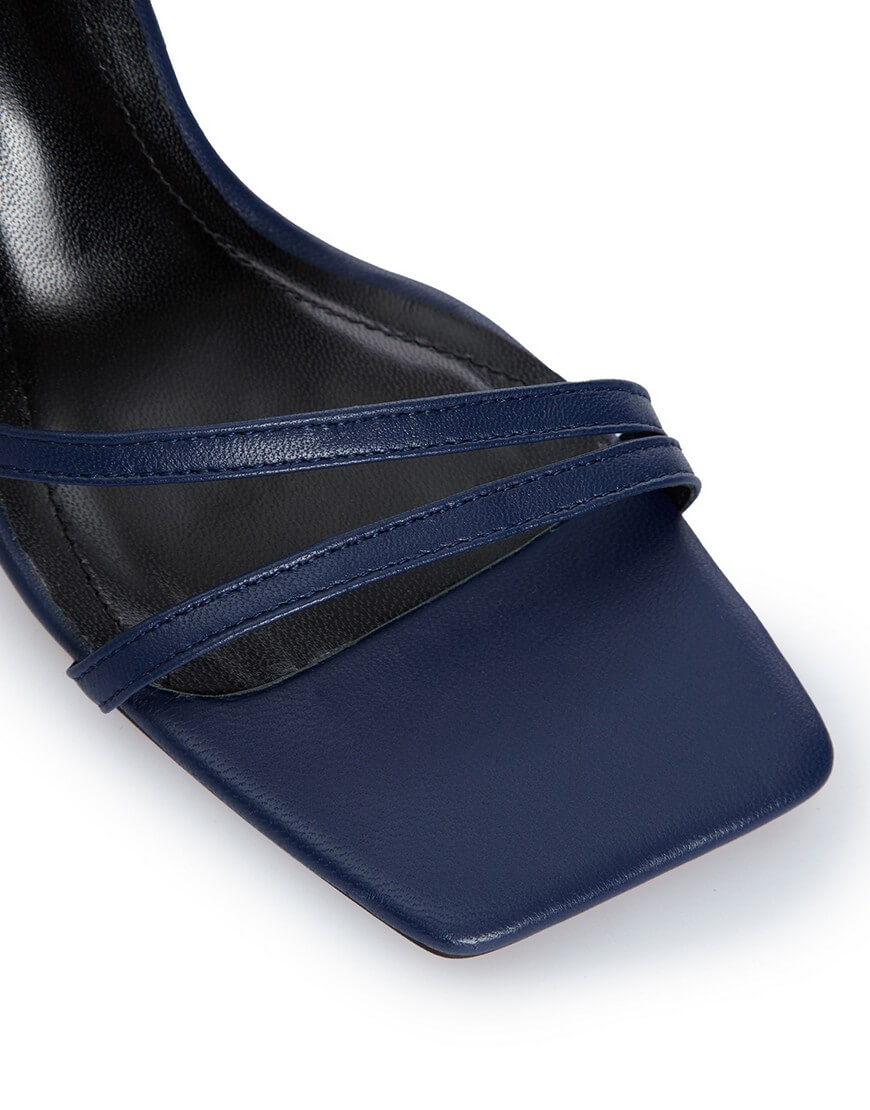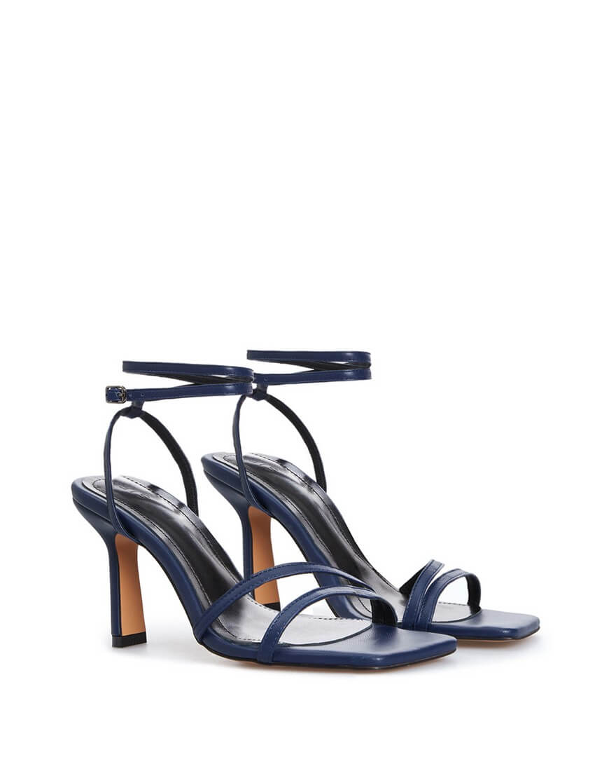 Босоніжки на підборах із подвійним ремінцем на щиколотці та мисом каре.