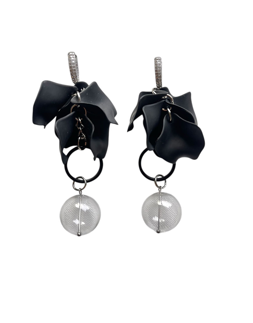 Доставка впродовж 2-5 робочих днівСережки нержавіюча сталь з цирконієм, пламтикові пелюстки,кулі скло