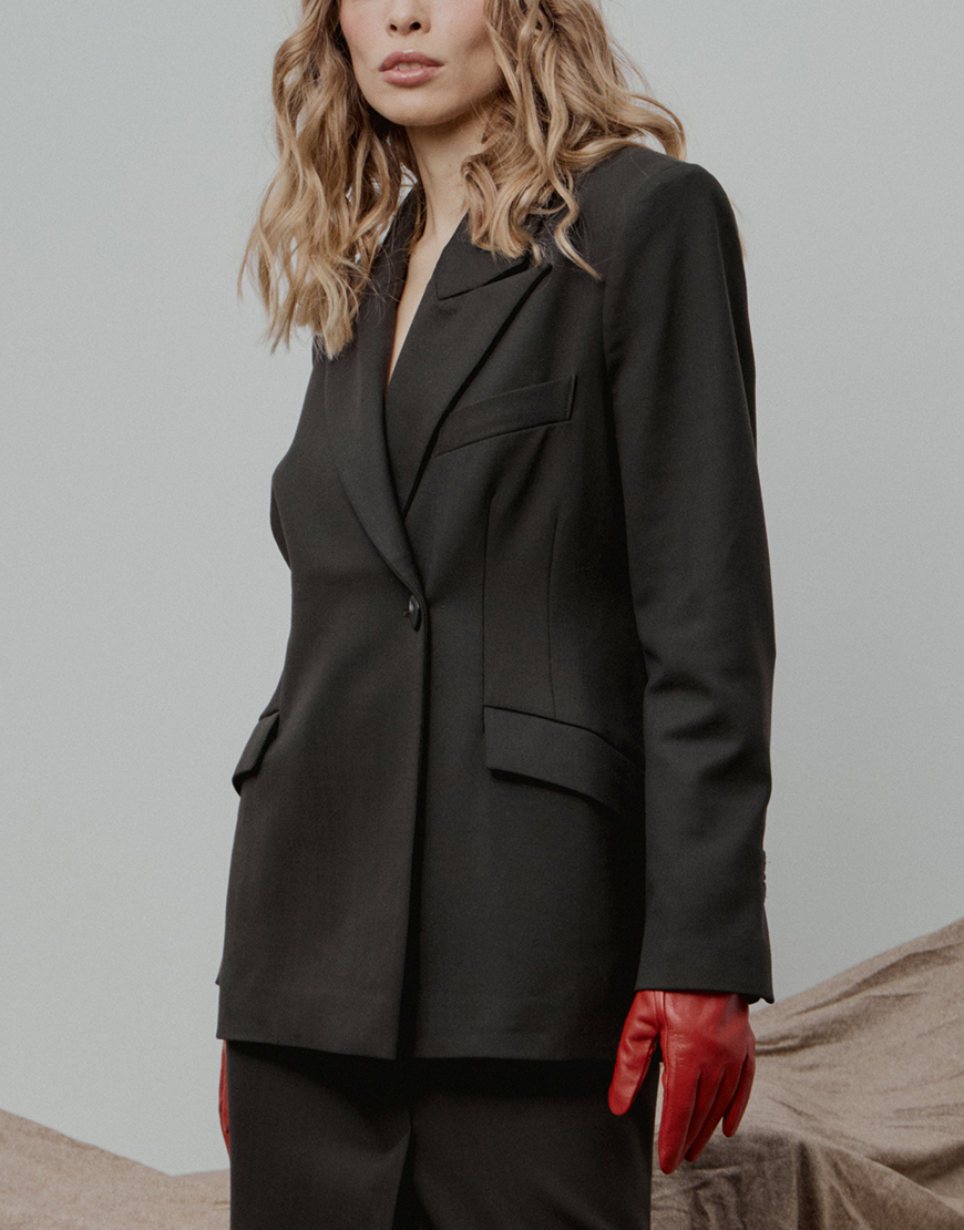 Приталений крій піджака вигідно підкреслює фігуру, створюючи витончену та структуровану силуету, що додає образу елегантності. З вишуканими деталями та класичним стилем, він ідеально поєднується з брюками або спідницею, піднімаючи ваш вигляд на зустрічах, вечірках чи більш урочистих заходах.