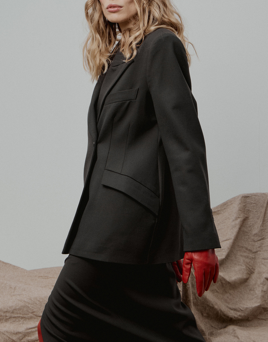 Доставка впродовж 2-14 робочих днівЧорний приталений піджак з вовни, створений для того, щоб забезпечити гострий та елегантний вигляд з винятковим комфортом. Виготовлений з високоякісної, дихаючої вовни, цей піджак надає стильний вигляд, зберігаючи тепло та елегантність. Гладкий чорний колір робить його універсальним елементом гардеробу, що підходить як для професійних, так і для casual образів.