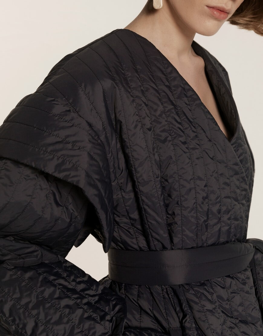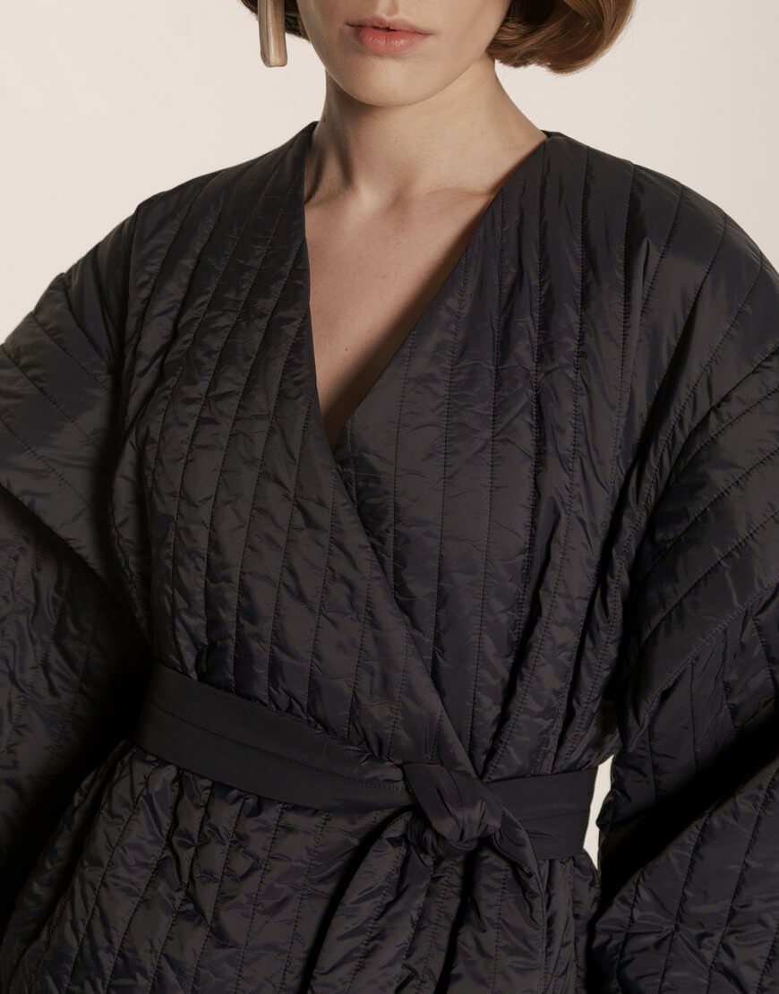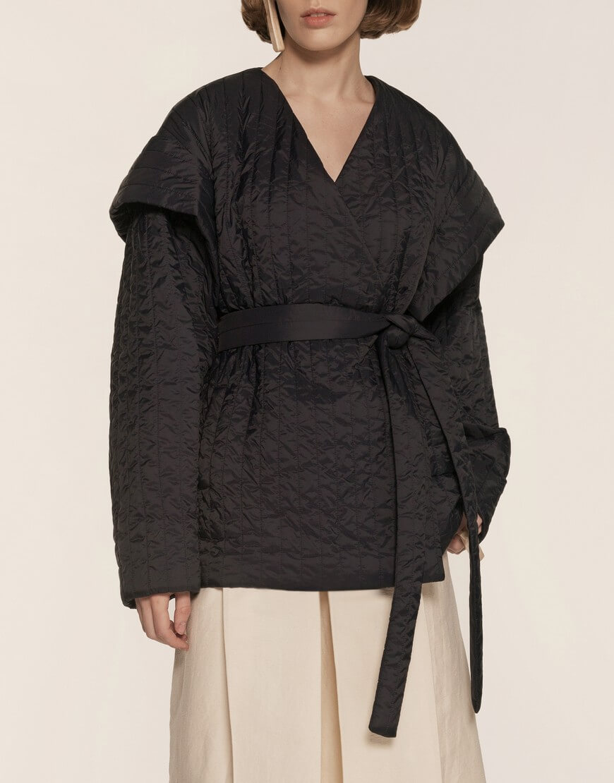 Легка куртка з водонепроникної тканини в стилі кімоно. Має кишені та пояс. Підкладка з віскози