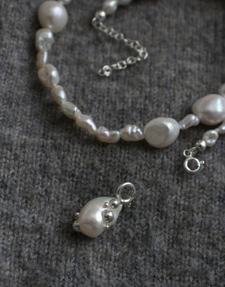 Браслет з міксу барокових перлин зі з’ємними підвісом на карабіні