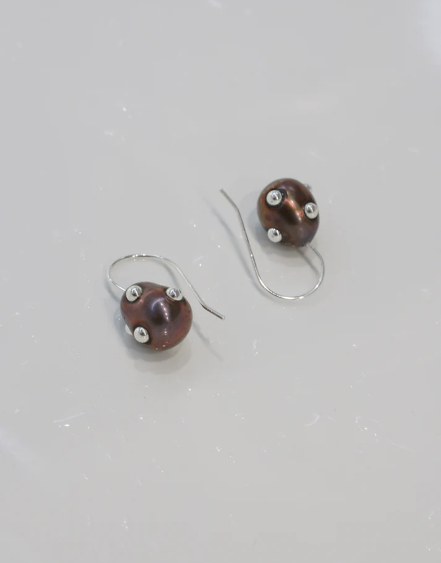 Доставка впродовж 2-5 робочих днівСимвол глибини й текстури – сережки з чорними перлинами, інкрустованими краплями срібла. Матові відблиски перлин поєднуються з органічним блиском срібла, створюючи ефект застиглої космічної миті.