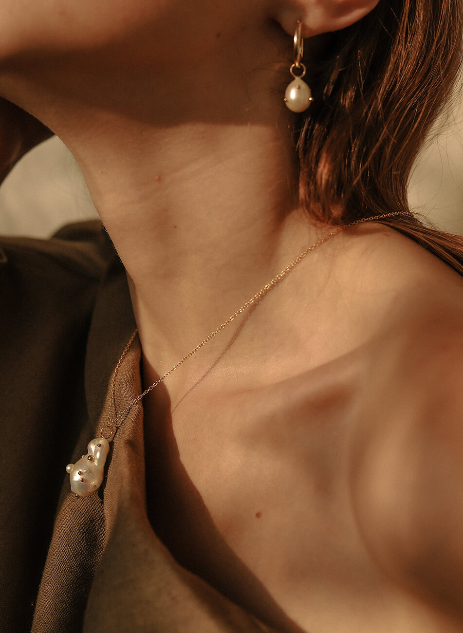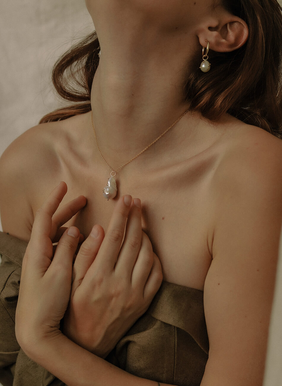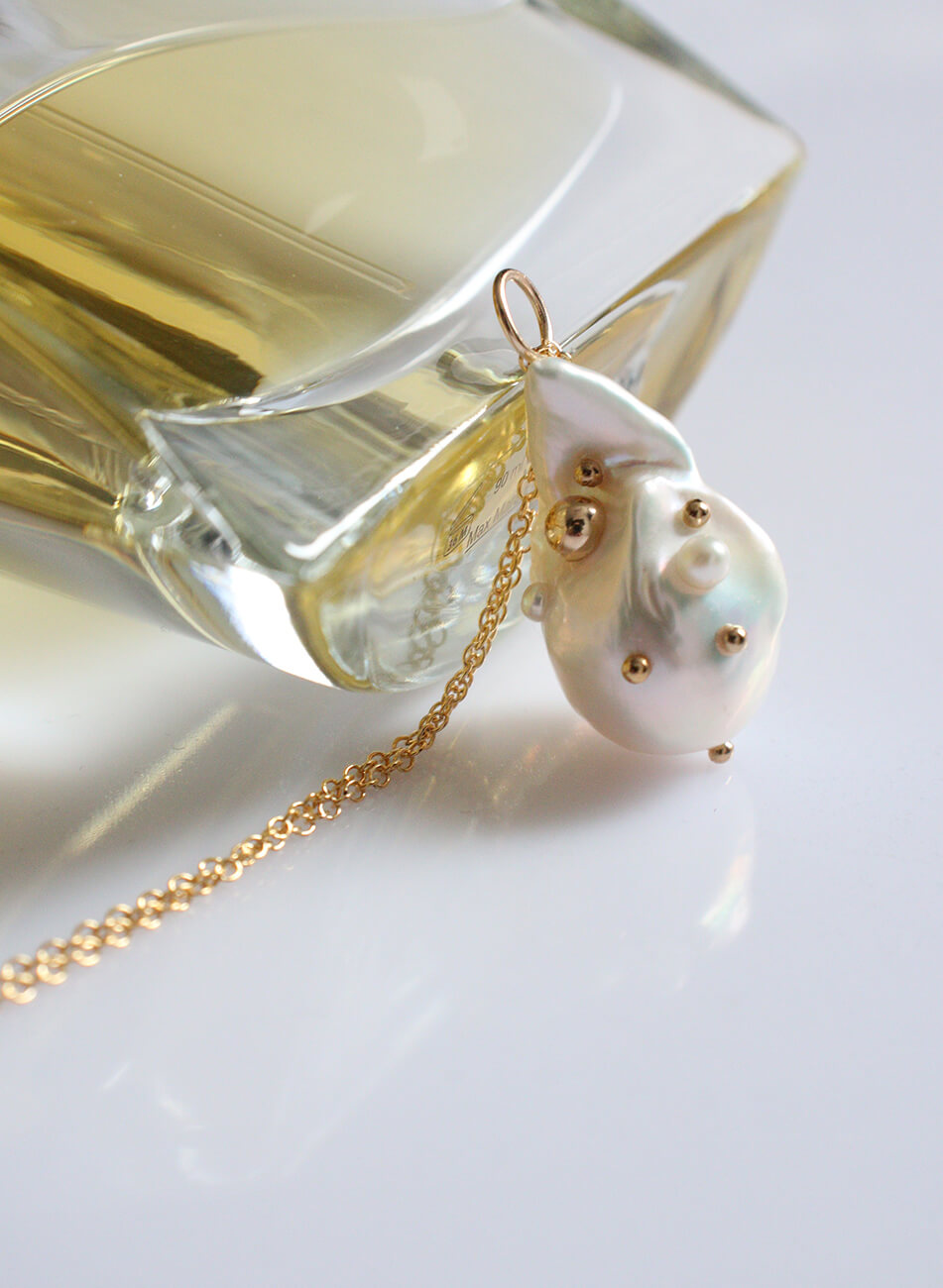 Ланцюжок з перлами бароко з інкрустацією перлами та золотими дропсами різного розміру
