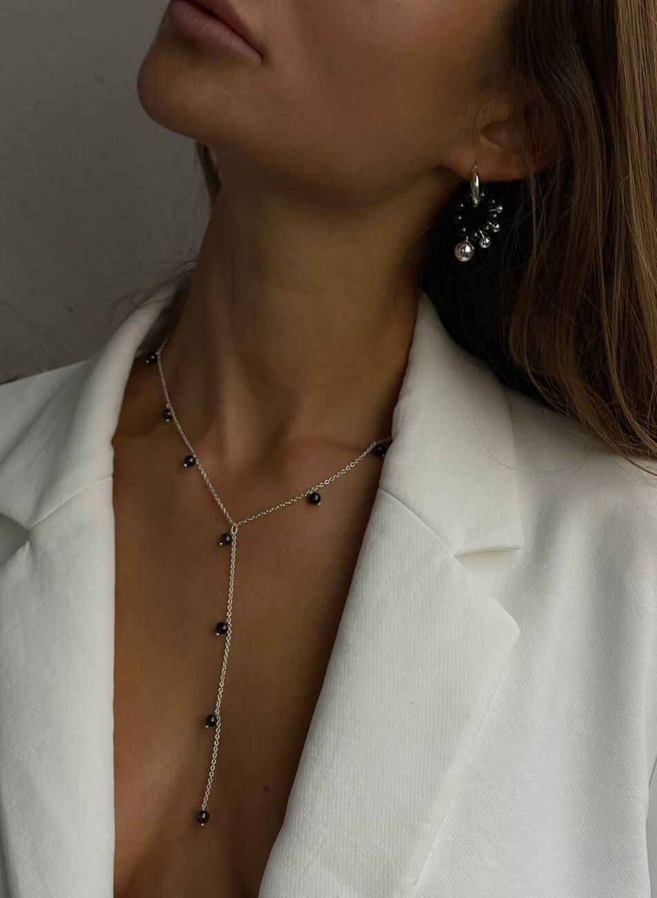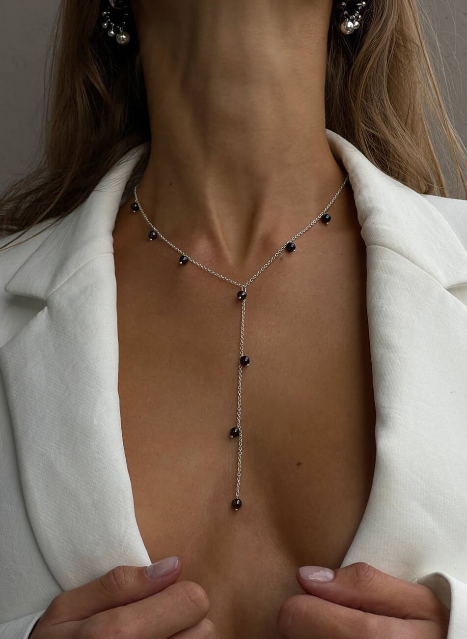 Доставка в течение 2-5 рабочих днейЛанцюжок-краватка з натуральними чорними перлами