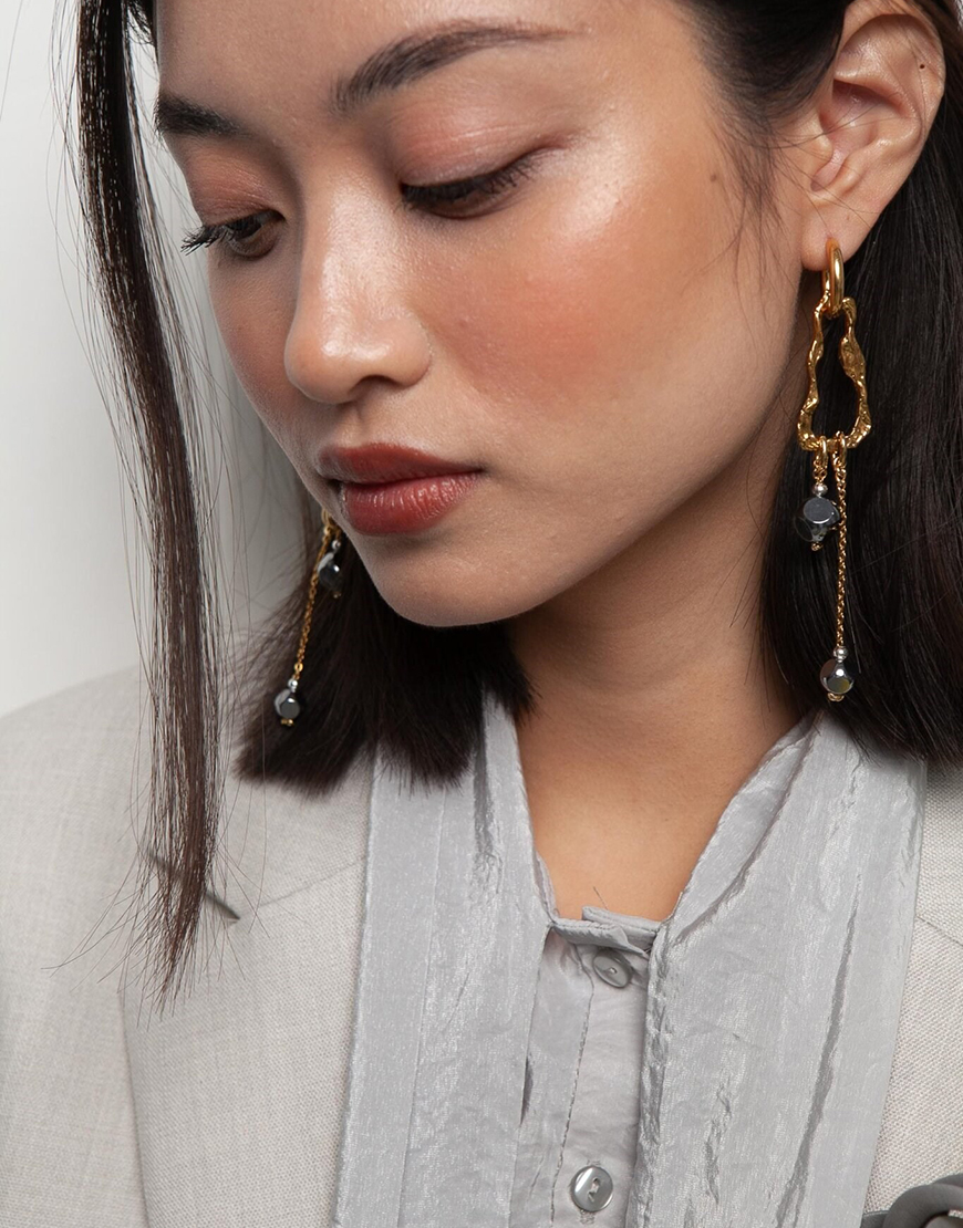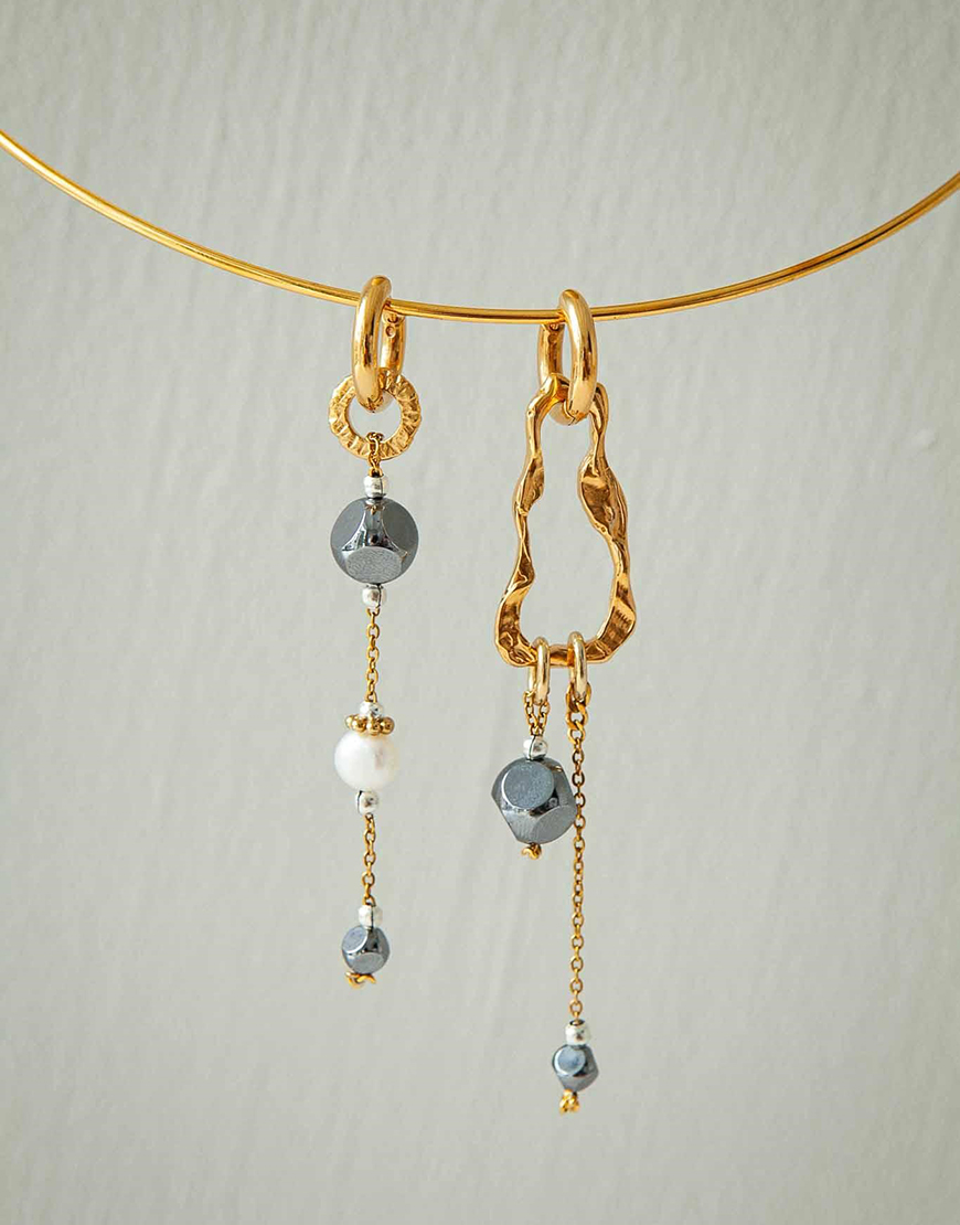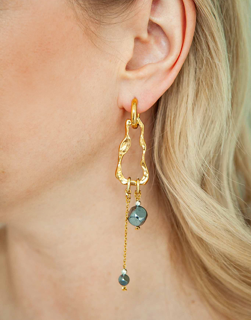 Сережки Frida Asymmetrical Gold з гематитом та перлиною