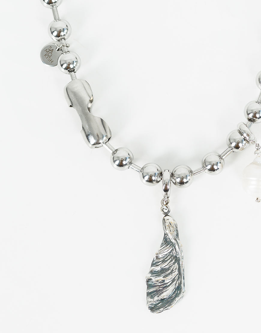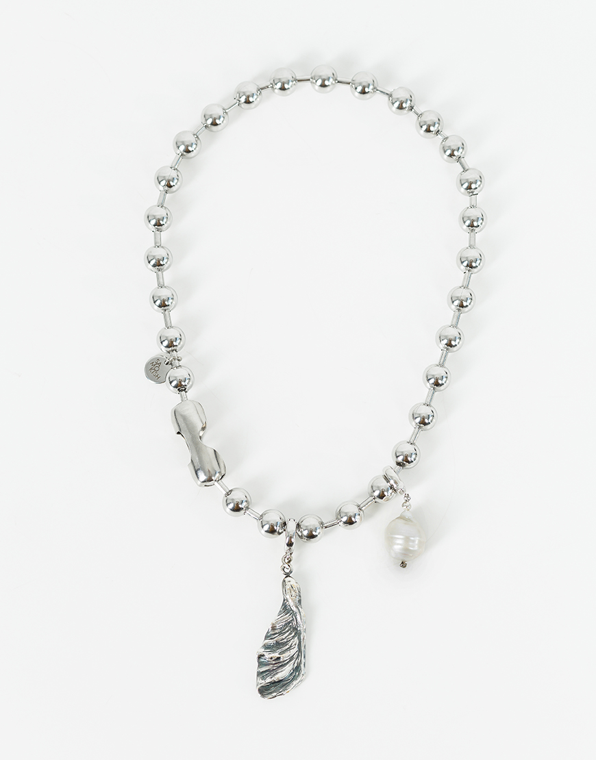 Медична сталь, латунь в сріблі з чорнінням, натуральна барочна перлина.