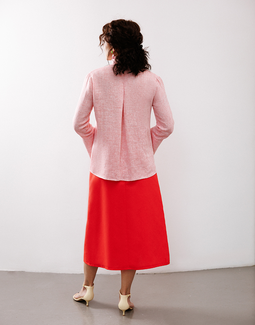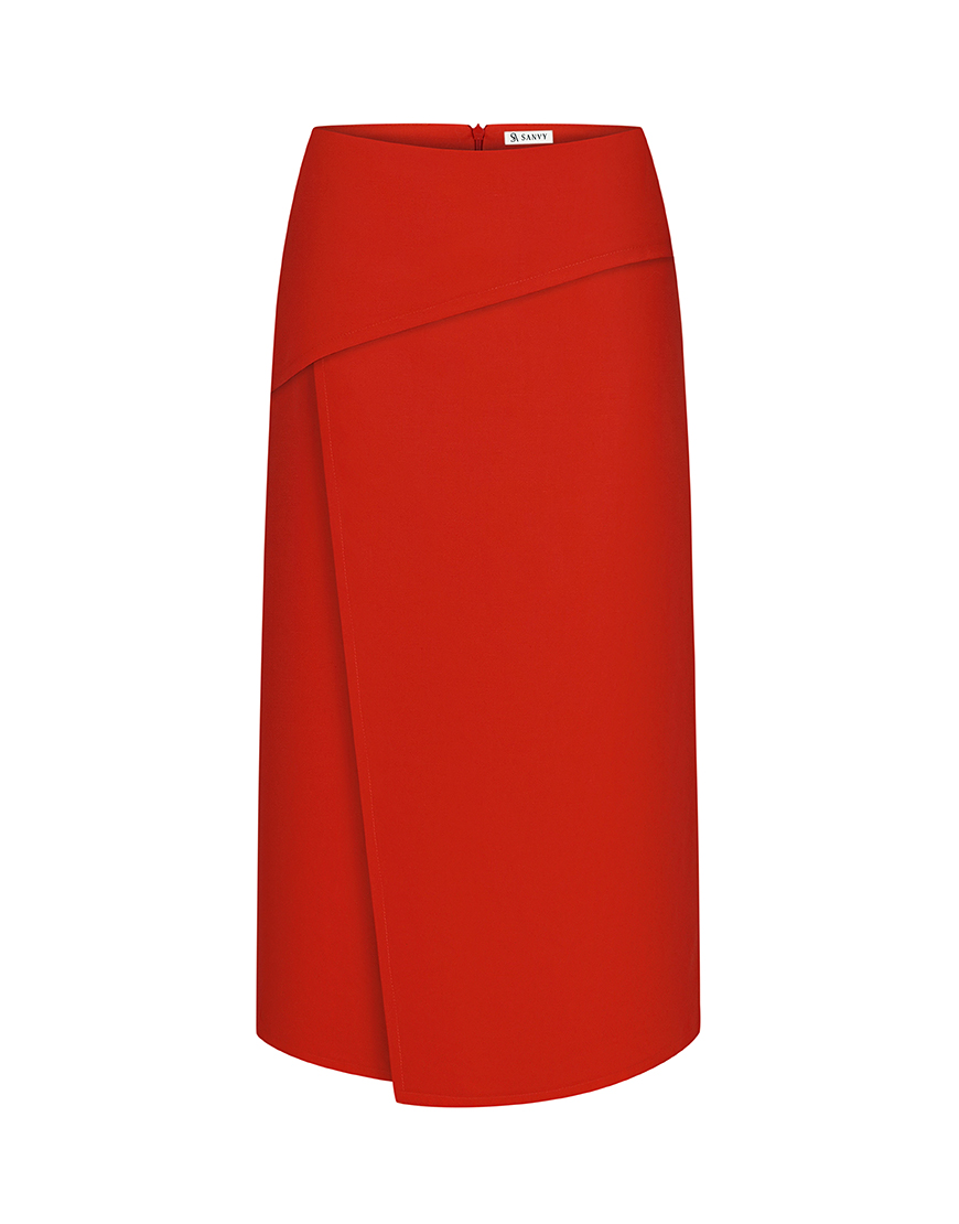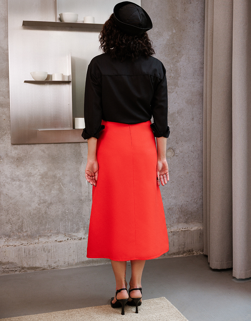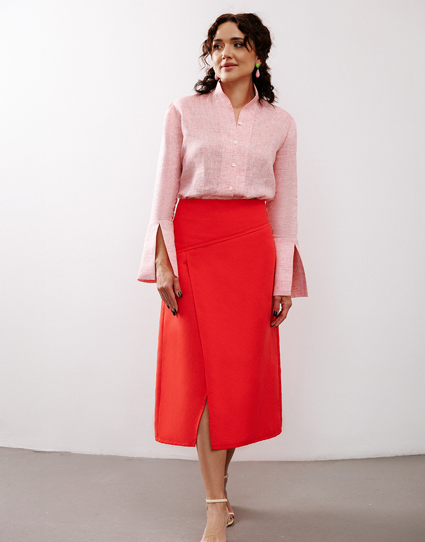 Доставка впродовж 3-5 робочих днівСпідниця зі 100% італійського гладкого льону з ефектом запаху та декоративною деталлю. Посадка середня. Довжина міді.