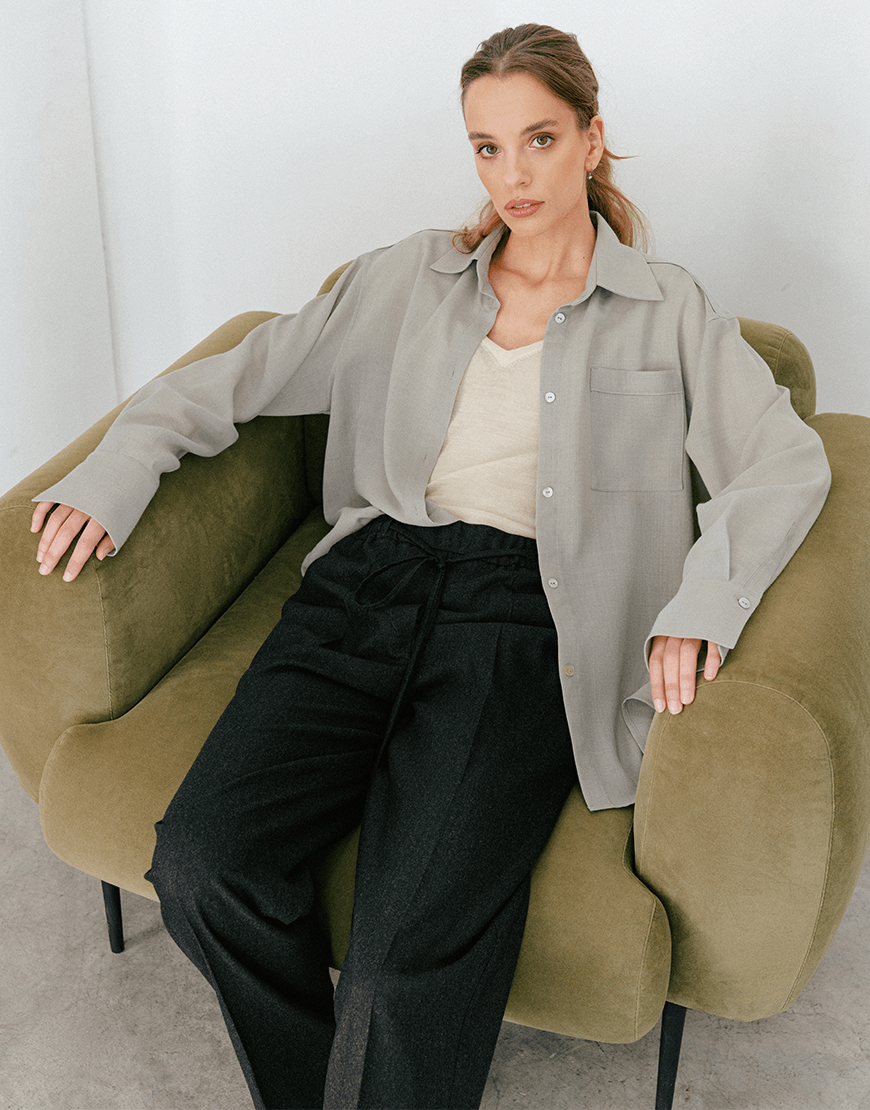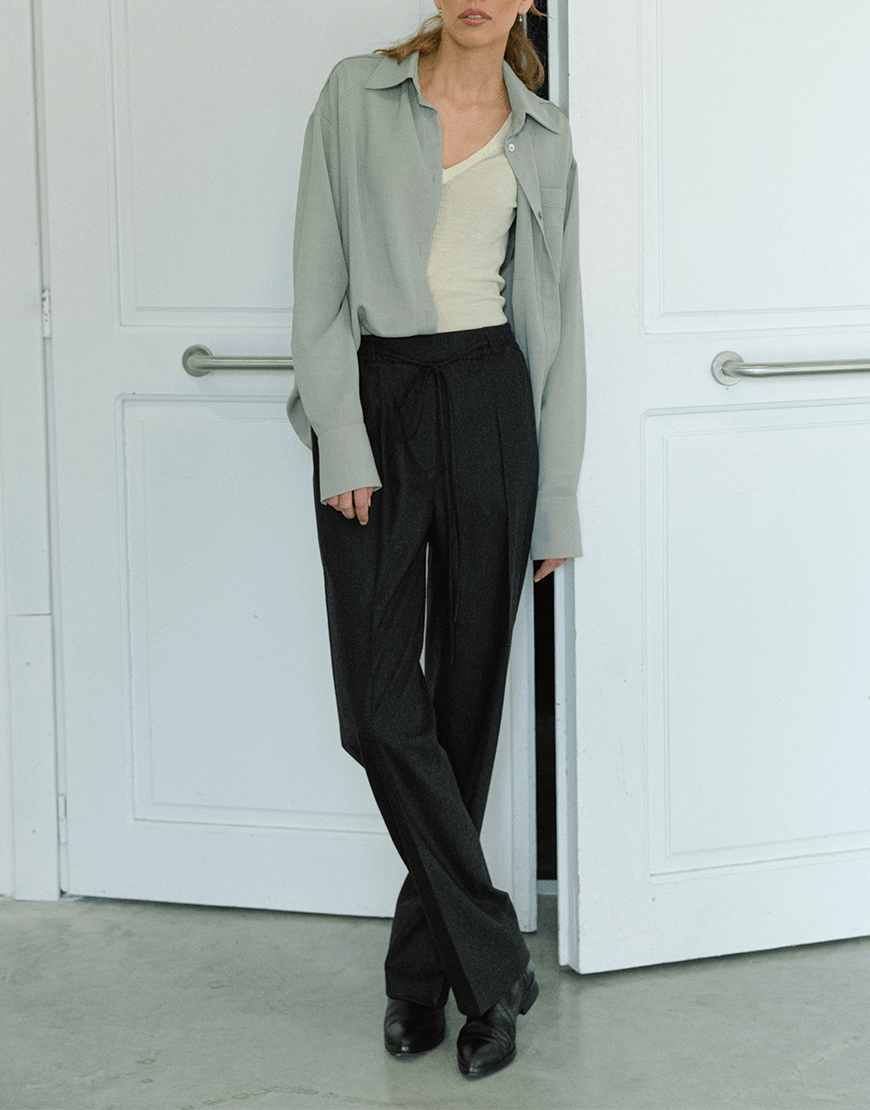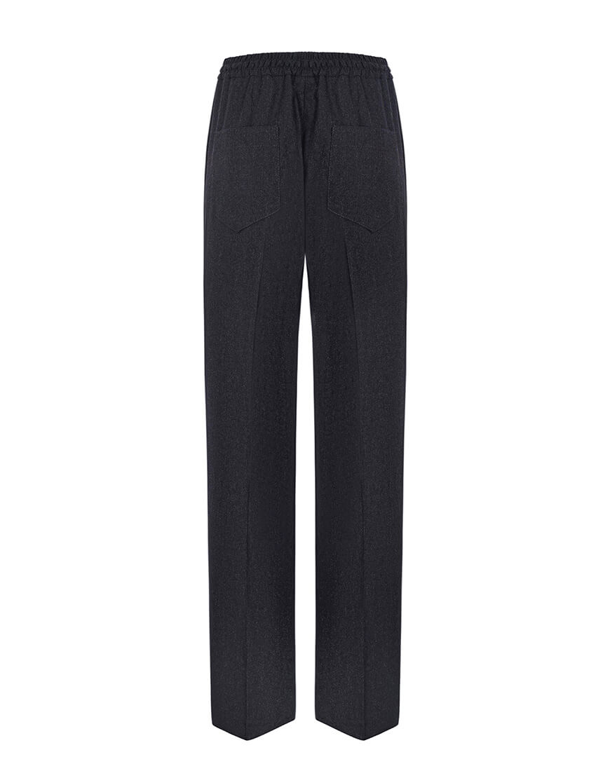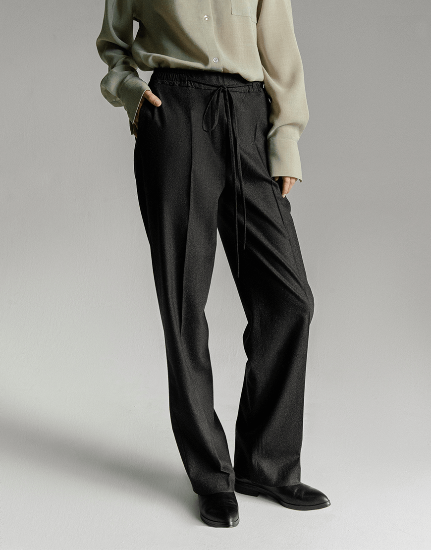 Доставка впродовж 3-5 робочих днівБрюки графітового кольору з м’якої преміальної італійської вовни фланелі. Мають прямий крій, задню кишеню та середню посадку, яка регулюється за рахунок поясу на резинці та зав’язок.