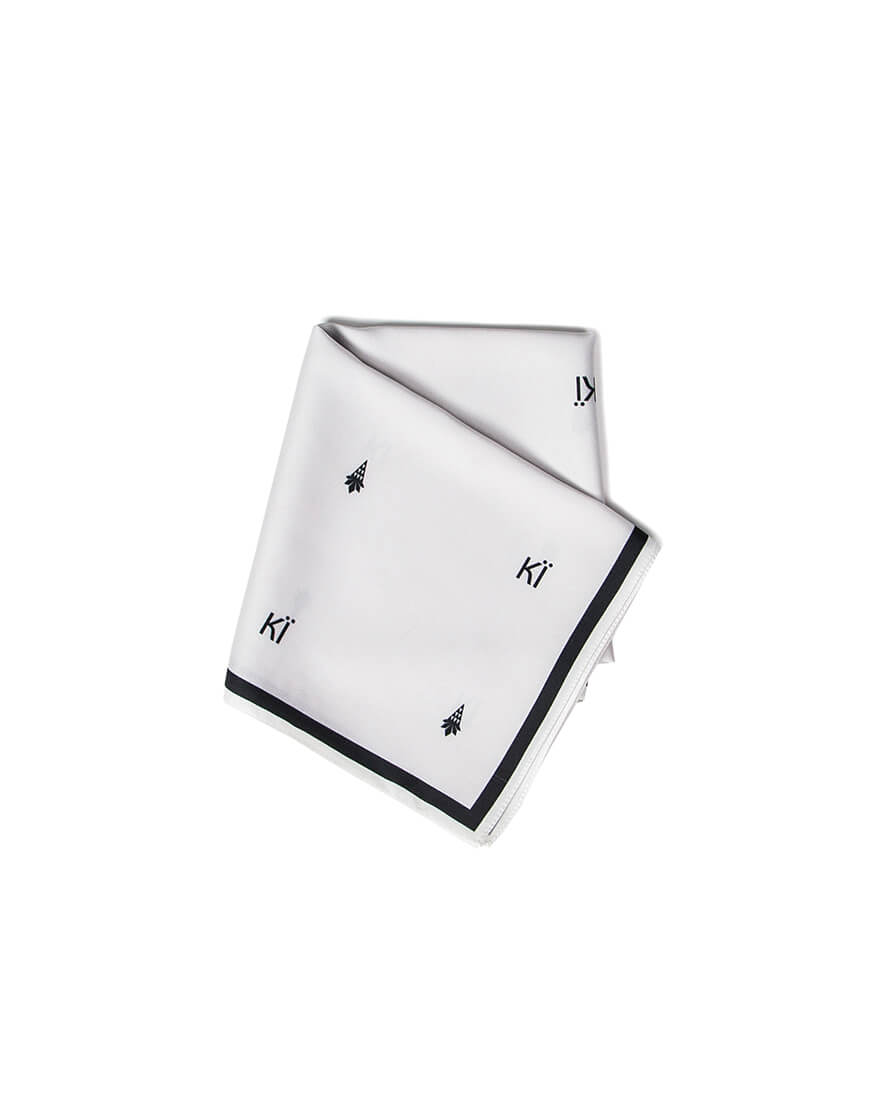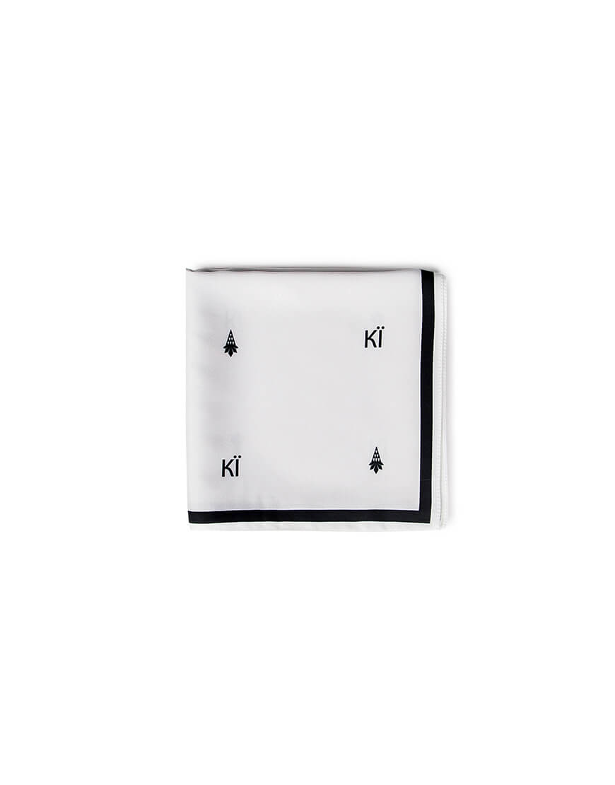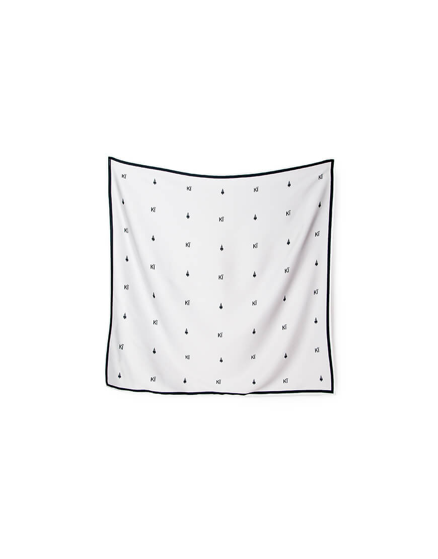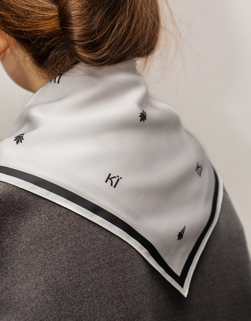 Доставка впродовж 1-3 робочих днівХустинка з символом Києва та літерами КЇ із штучного шовку, край з потаємним швом, зробленним вручну. Дрібний принт