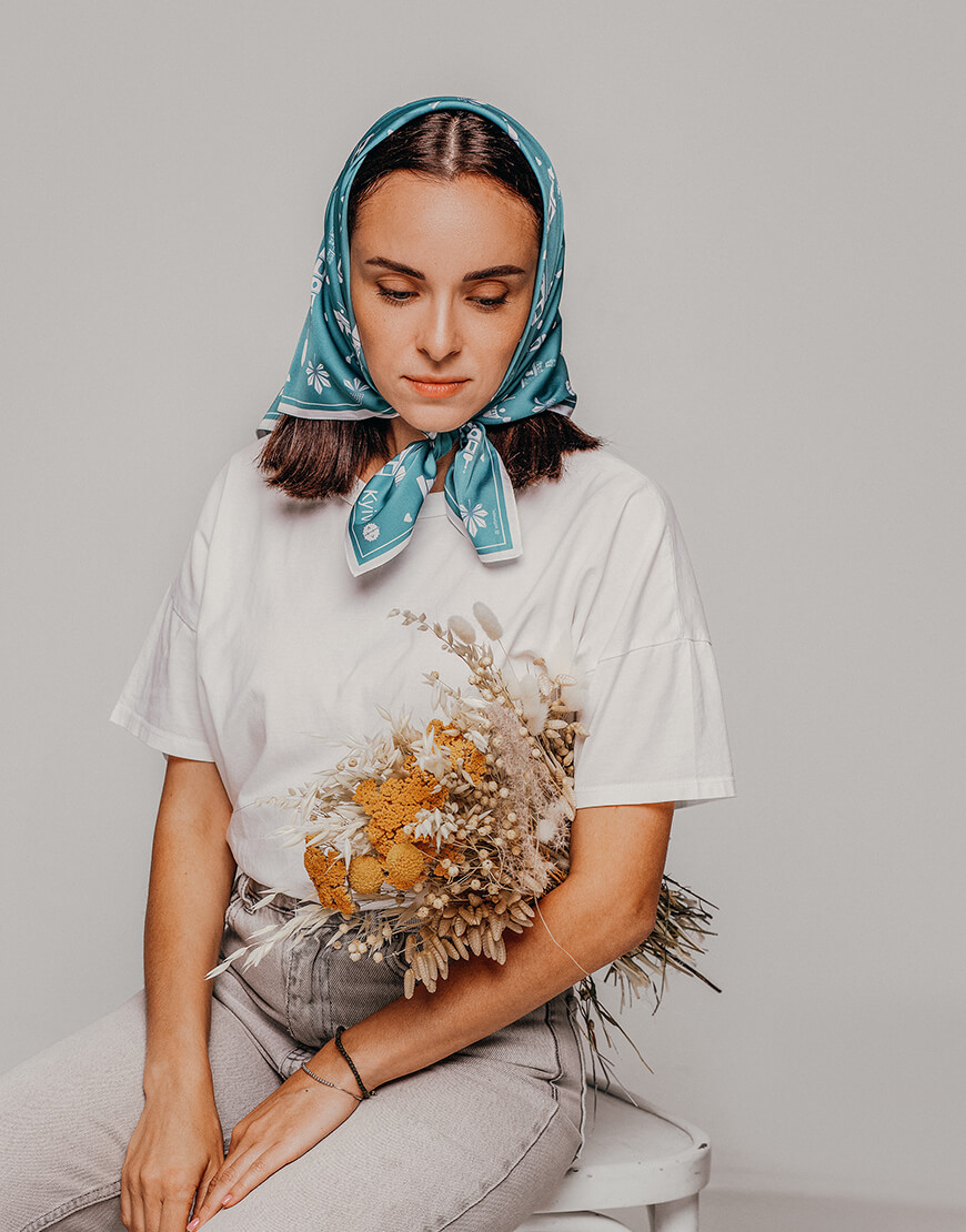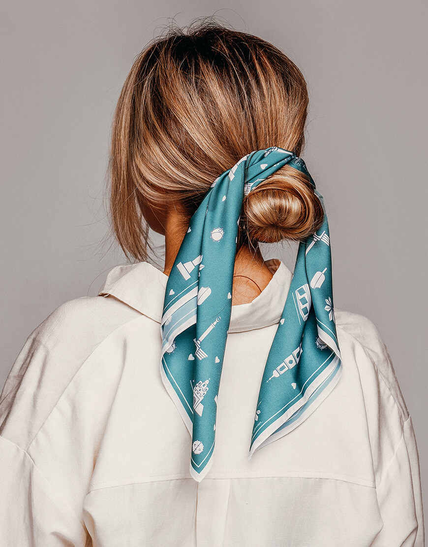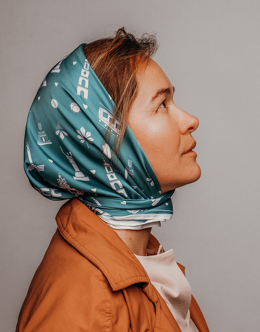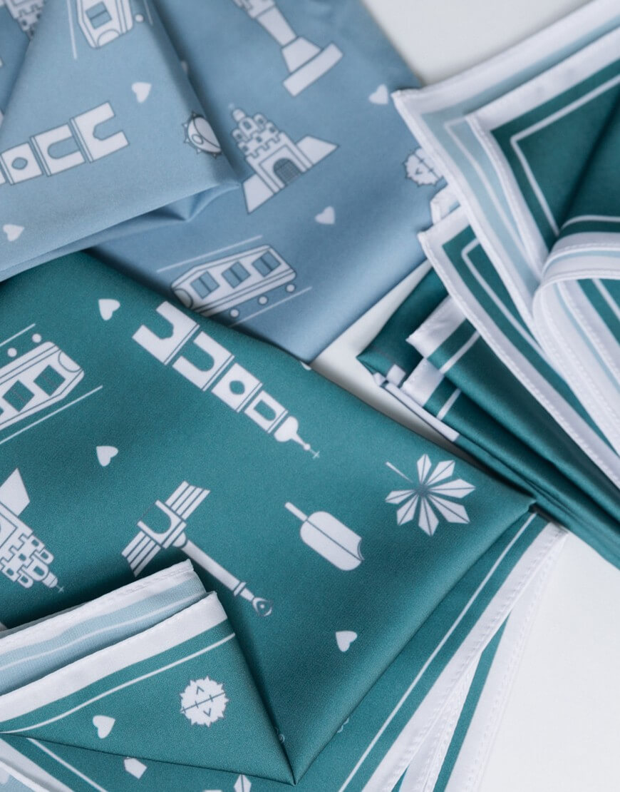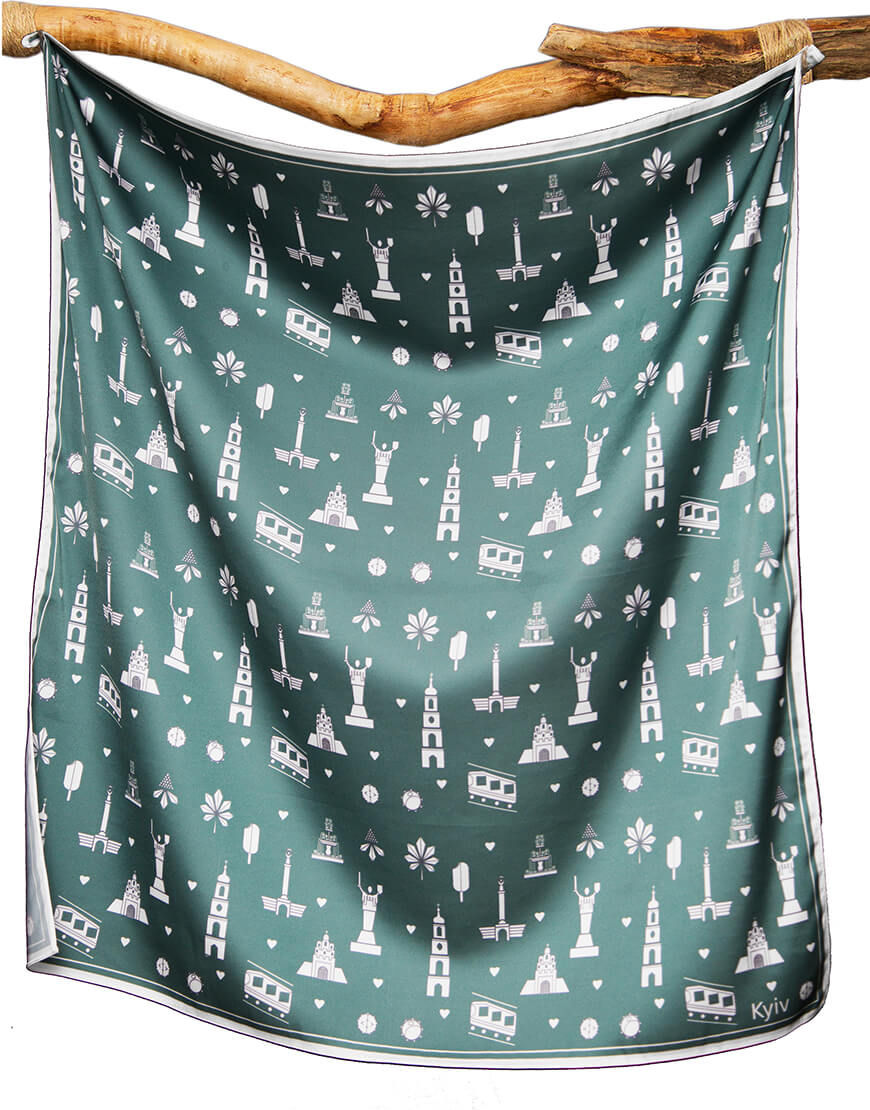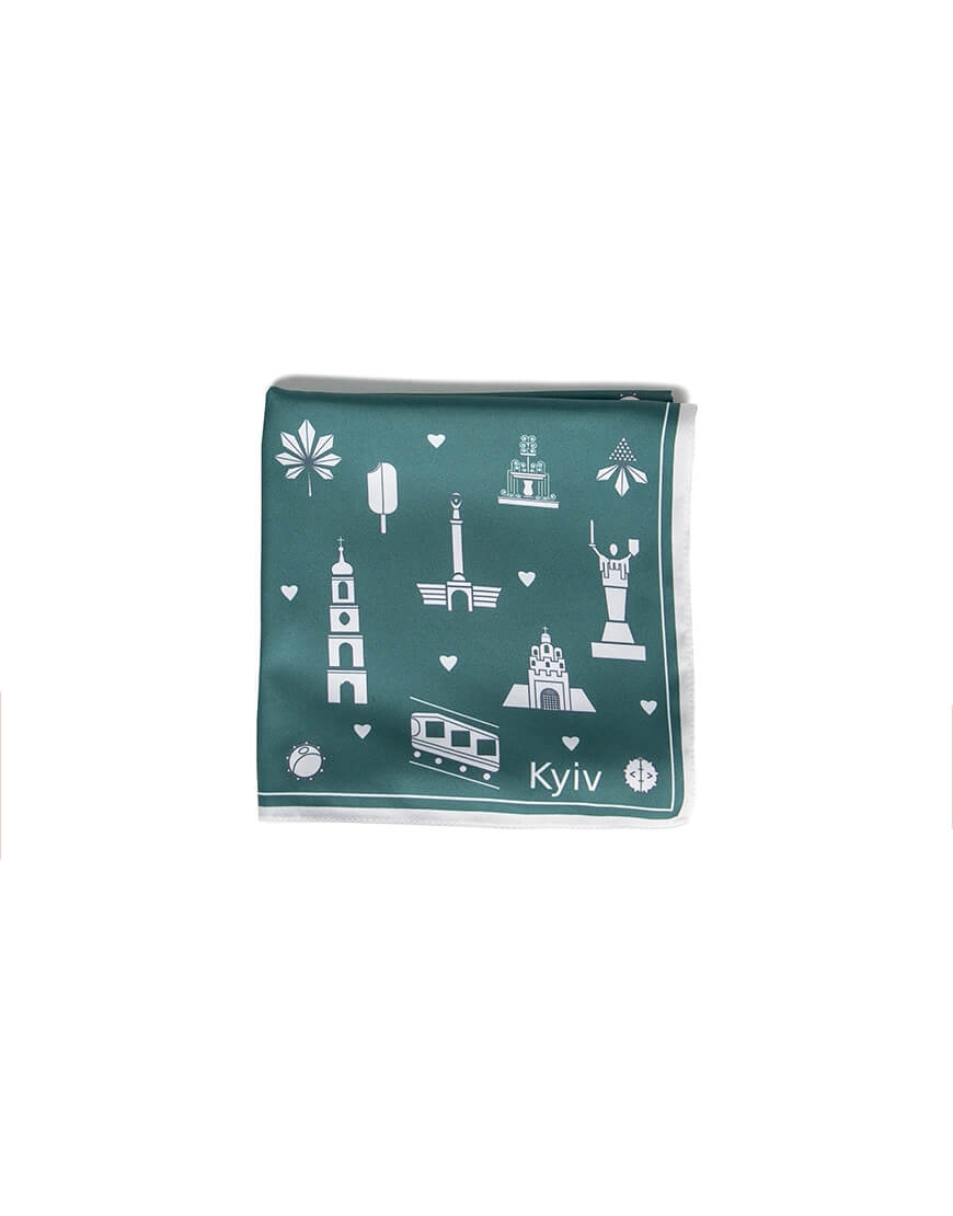 Хустинка з символами Києва зі штучного шовку, край з потайним швом зроблений вручну