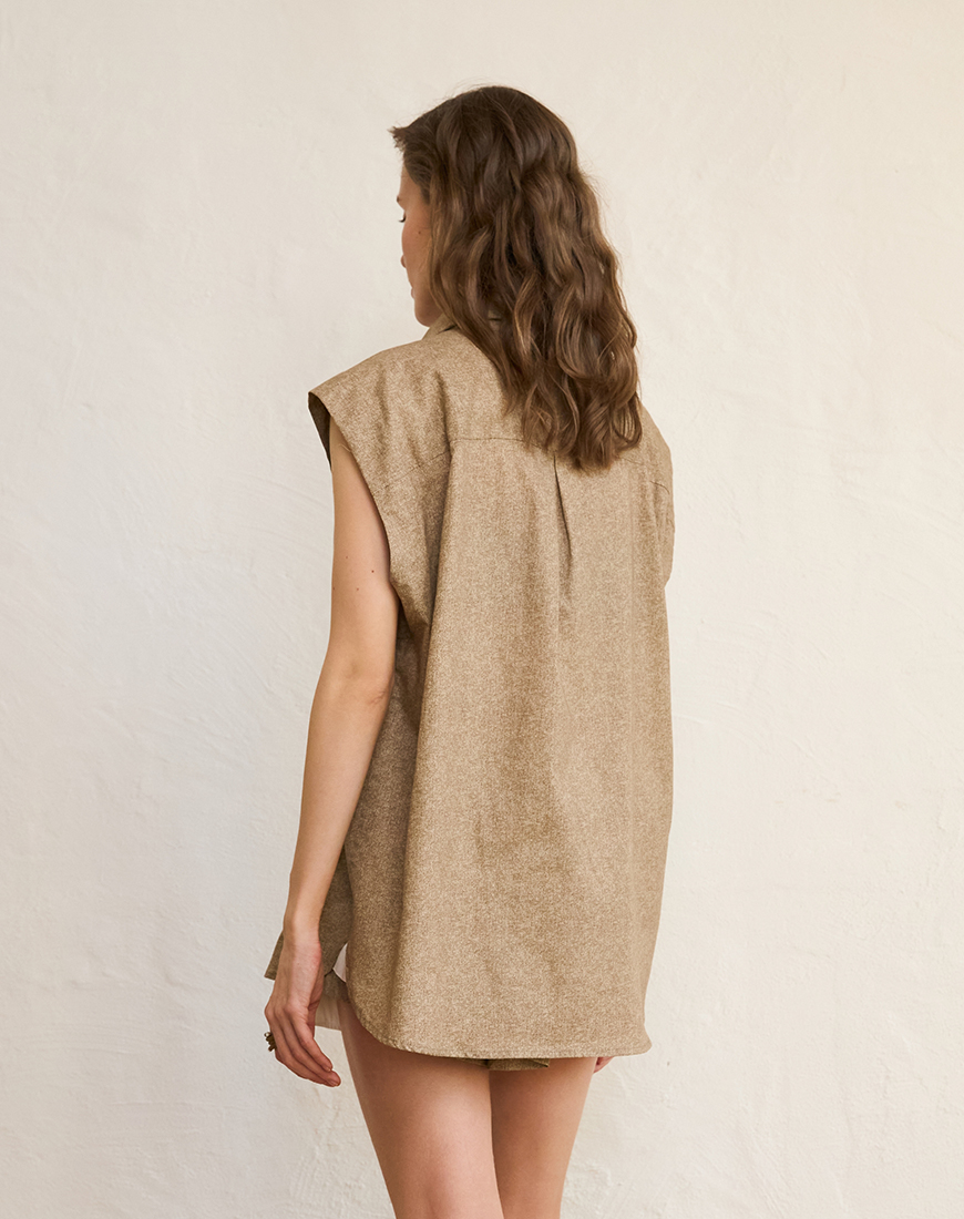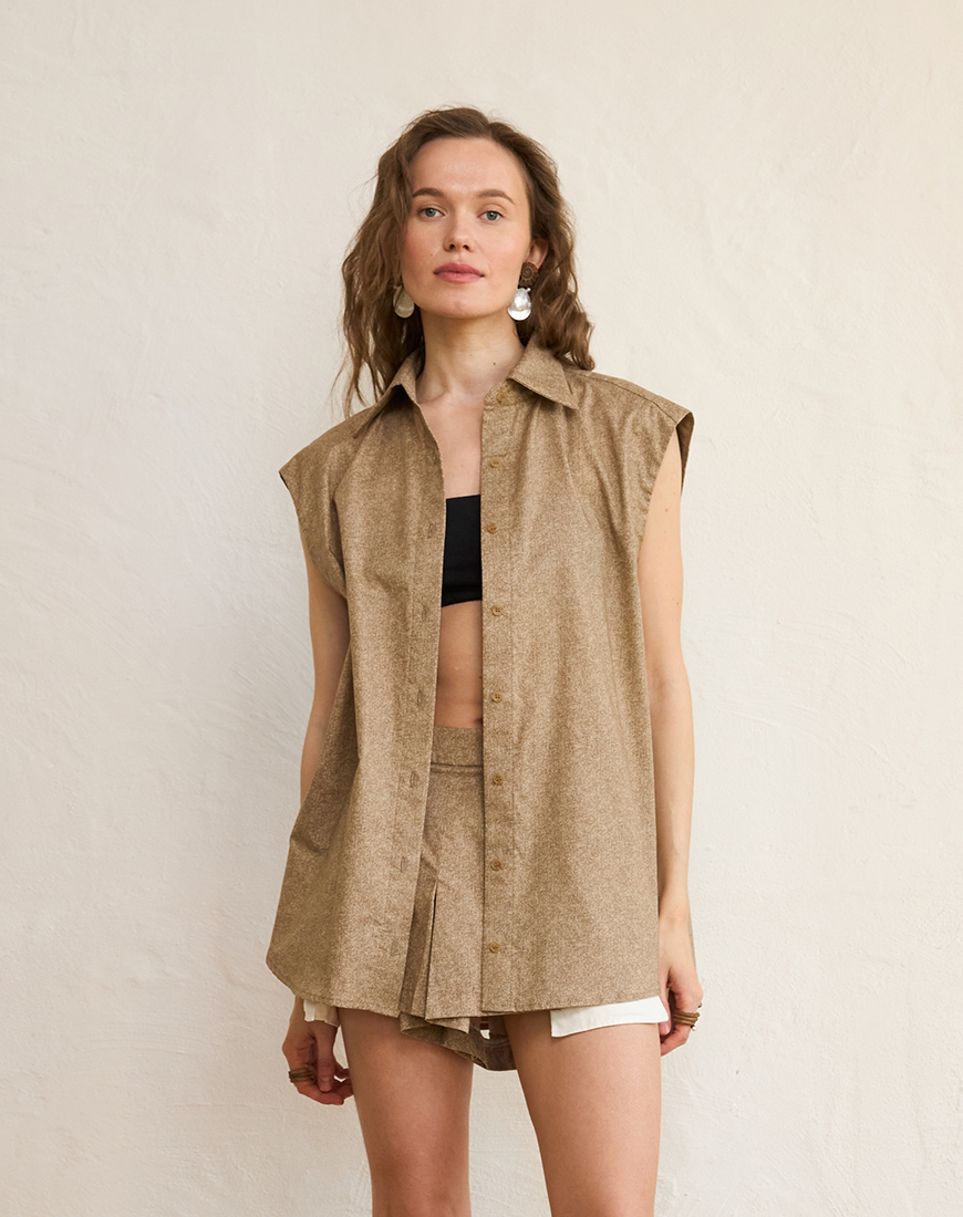 Доставка впродовж 2-14 робочих днівБезрукавка-сорочка з бавовни переосмислює поняття легкого стилю завдяки вільному оверсайз-силуету та повітропроникній тканині зі 100% бавовни. Створена для максимального комфорту, ця річ ідеально підходить для спекотних днів або багатошарових образів з сучасним акцентом.