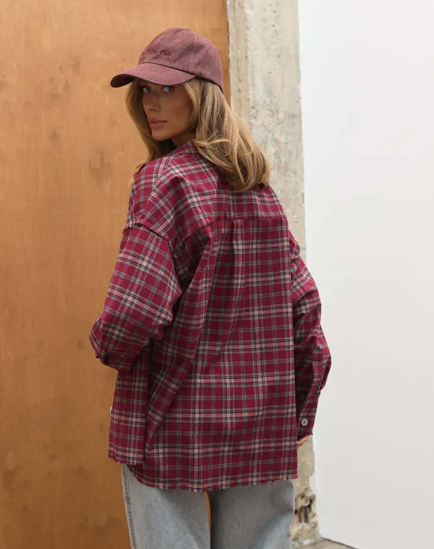 Сорочка в клітинку з акцентними швами TW28 бургунді